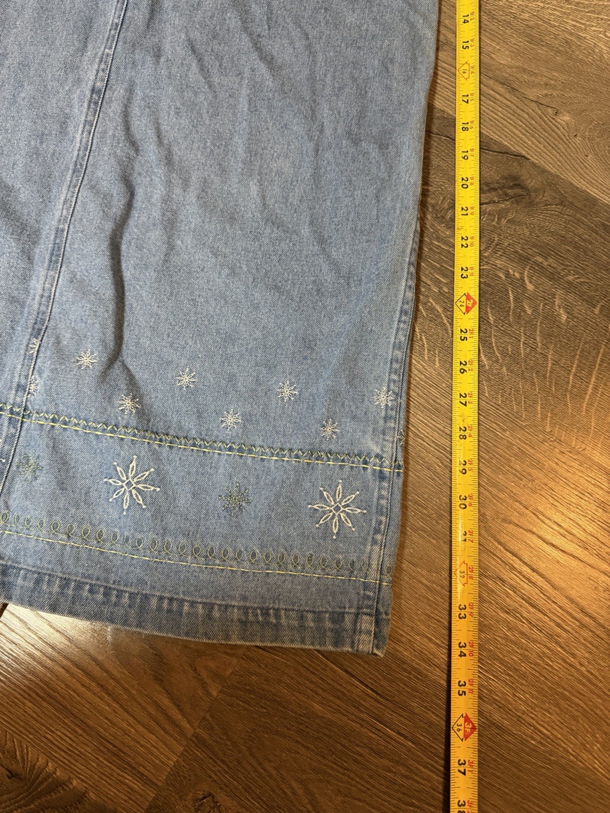 как выглядит Vintage Y2k Christopher Banks Jean Skirt Womens sz 10 Blue, Embroidered Detail фото