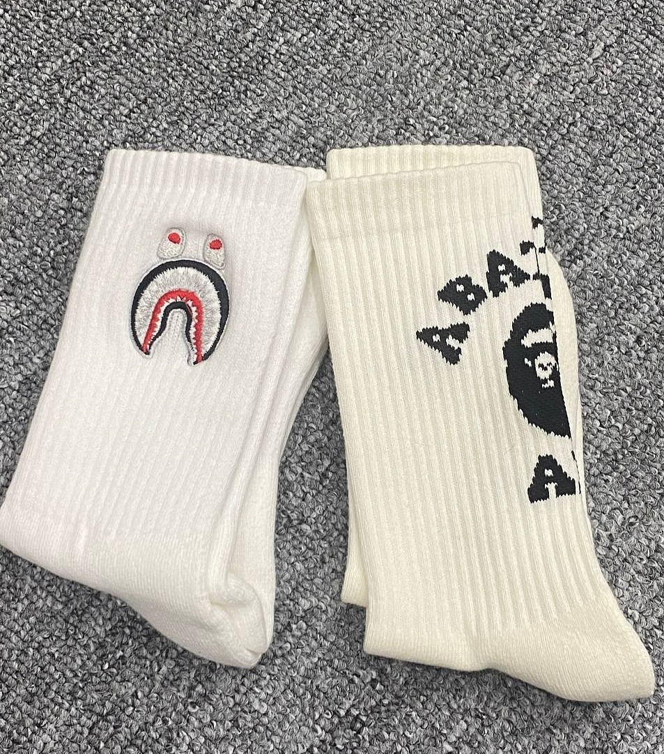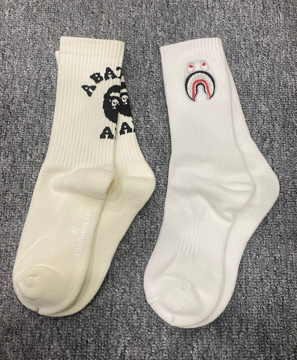A Bathing Ape White Ribbed Crew Socks 2-Pack Classic Ape Head Logo Accessory NEW