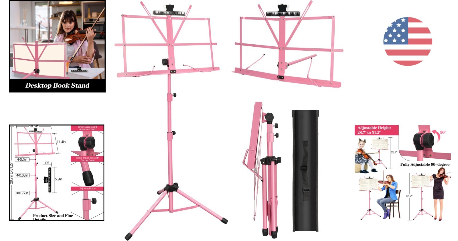 Portable 2-in-1 Sheet Music Stand - Adjustable Foldable with Carrying Bag
