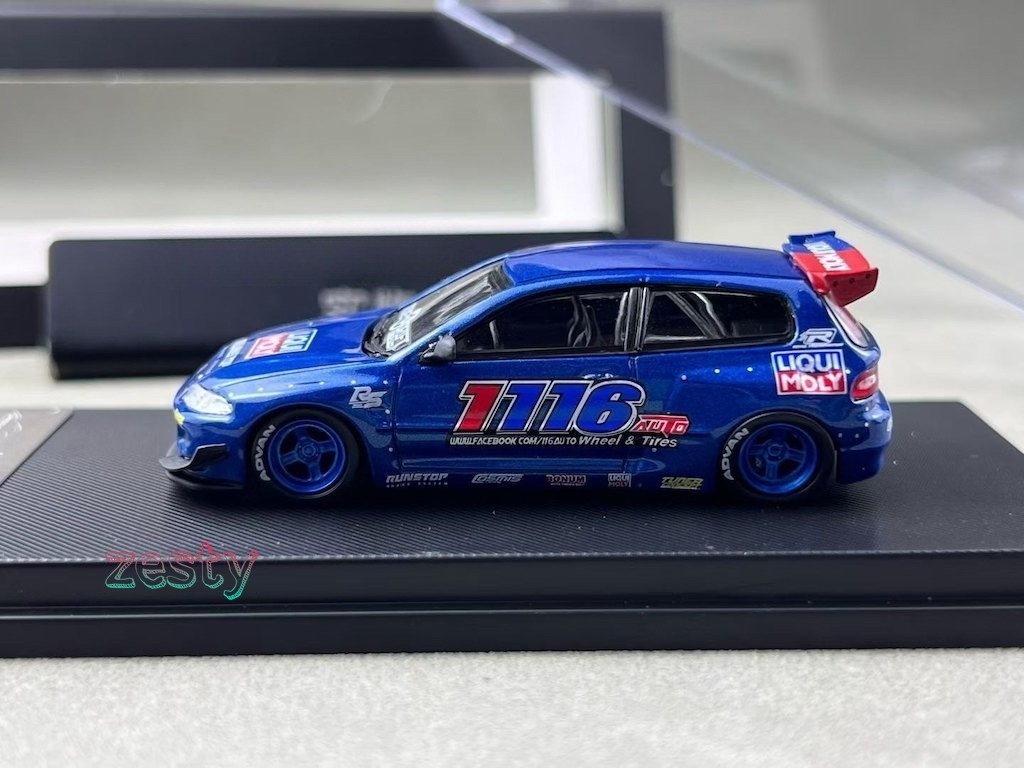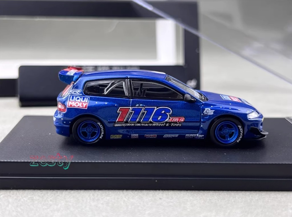MC 1:64 Blue Civic EG6 1116 Hatchback Sports Model Diecast Display Car