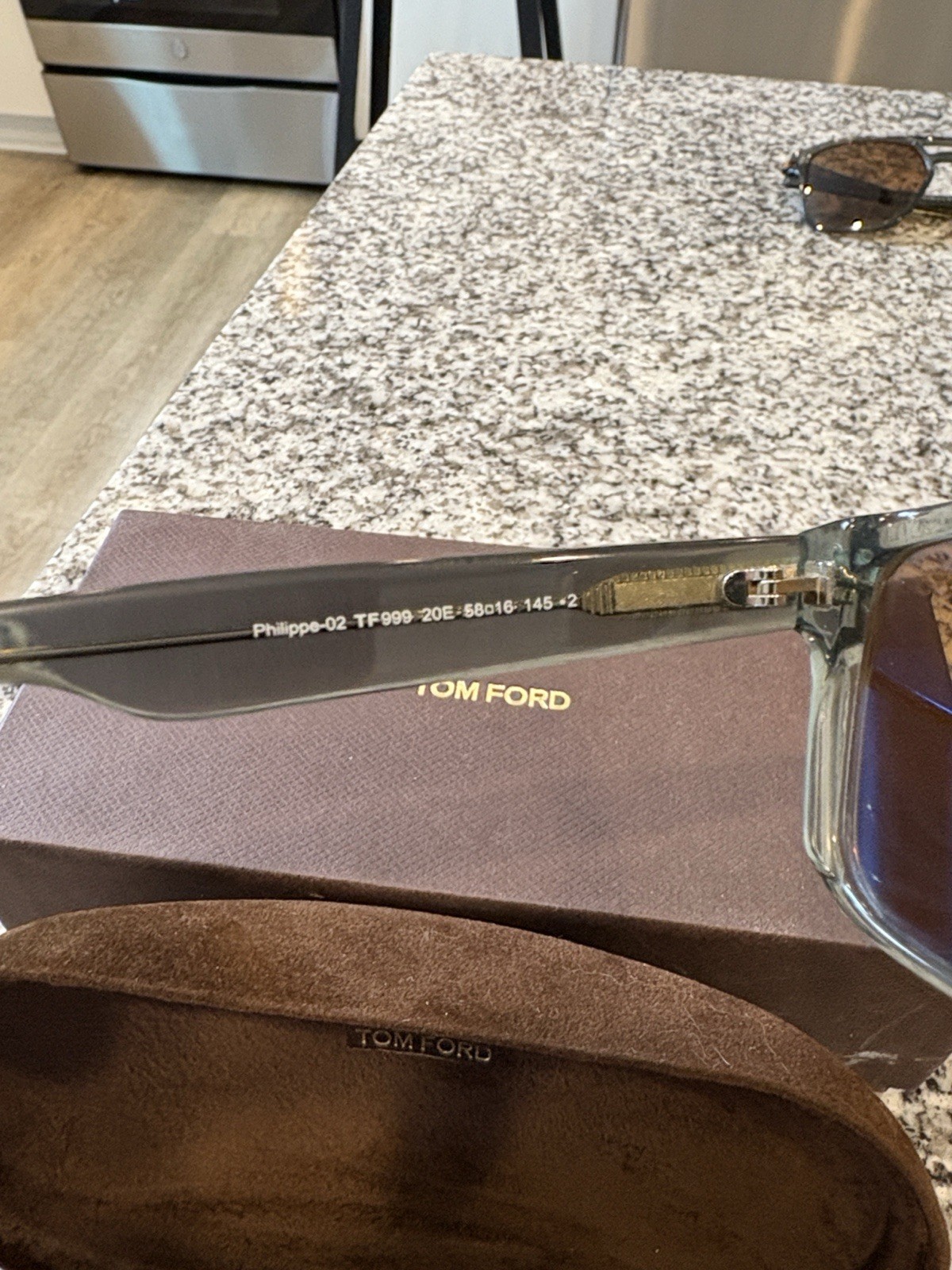 как выглядит Tom Ford Philippe-02 TF999-20E Square Sunglasses Clear Plastic Frame Brown Lens фото