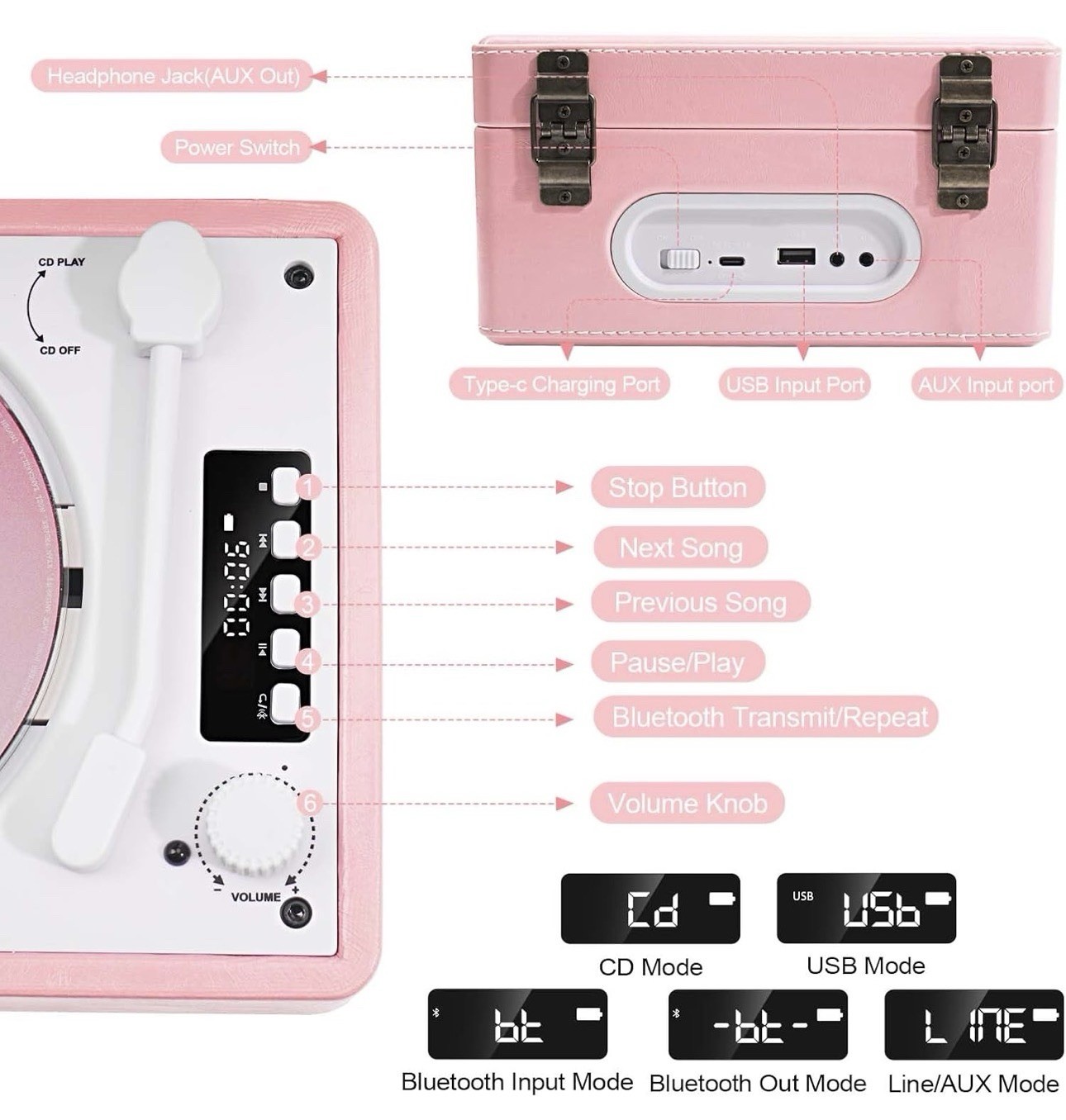 как выглядит Light Pink Vintage Desktop CD Player with Upgraded Speakers and Bluetooth In/Out фото