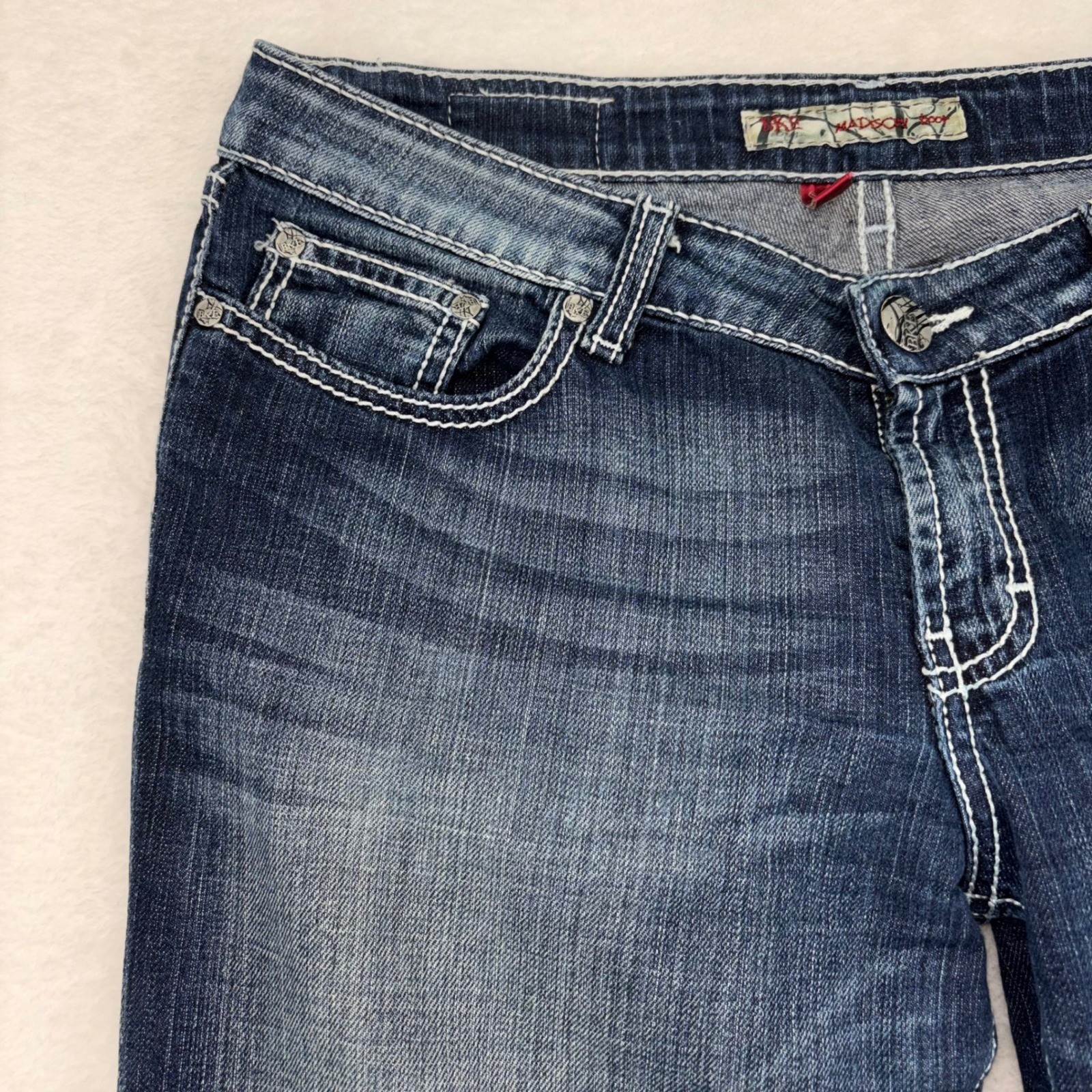 как выглядит BKE Madison Bootcut Jeans Womens 30 Dark Wash Stretch Contrast Stitch Denim фото