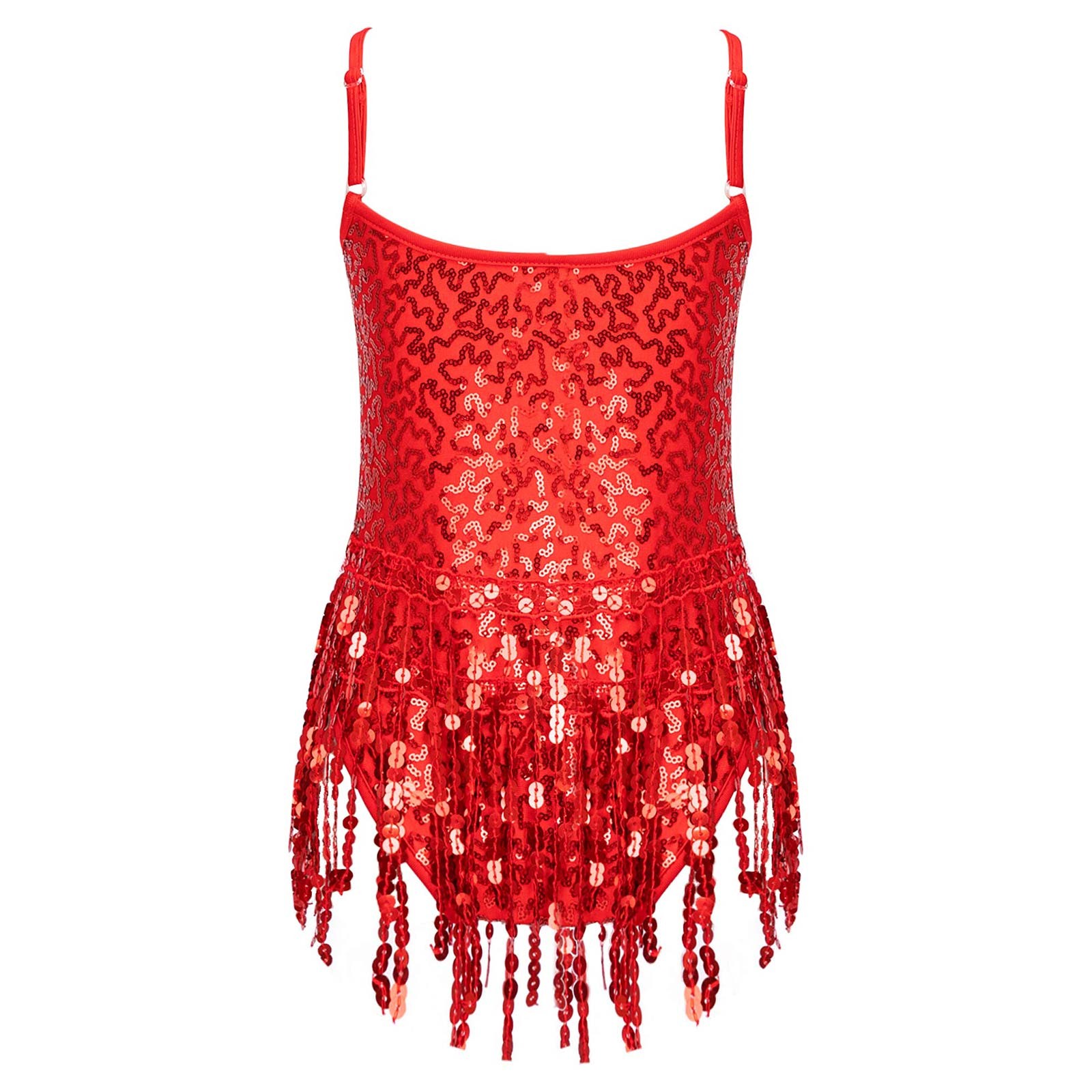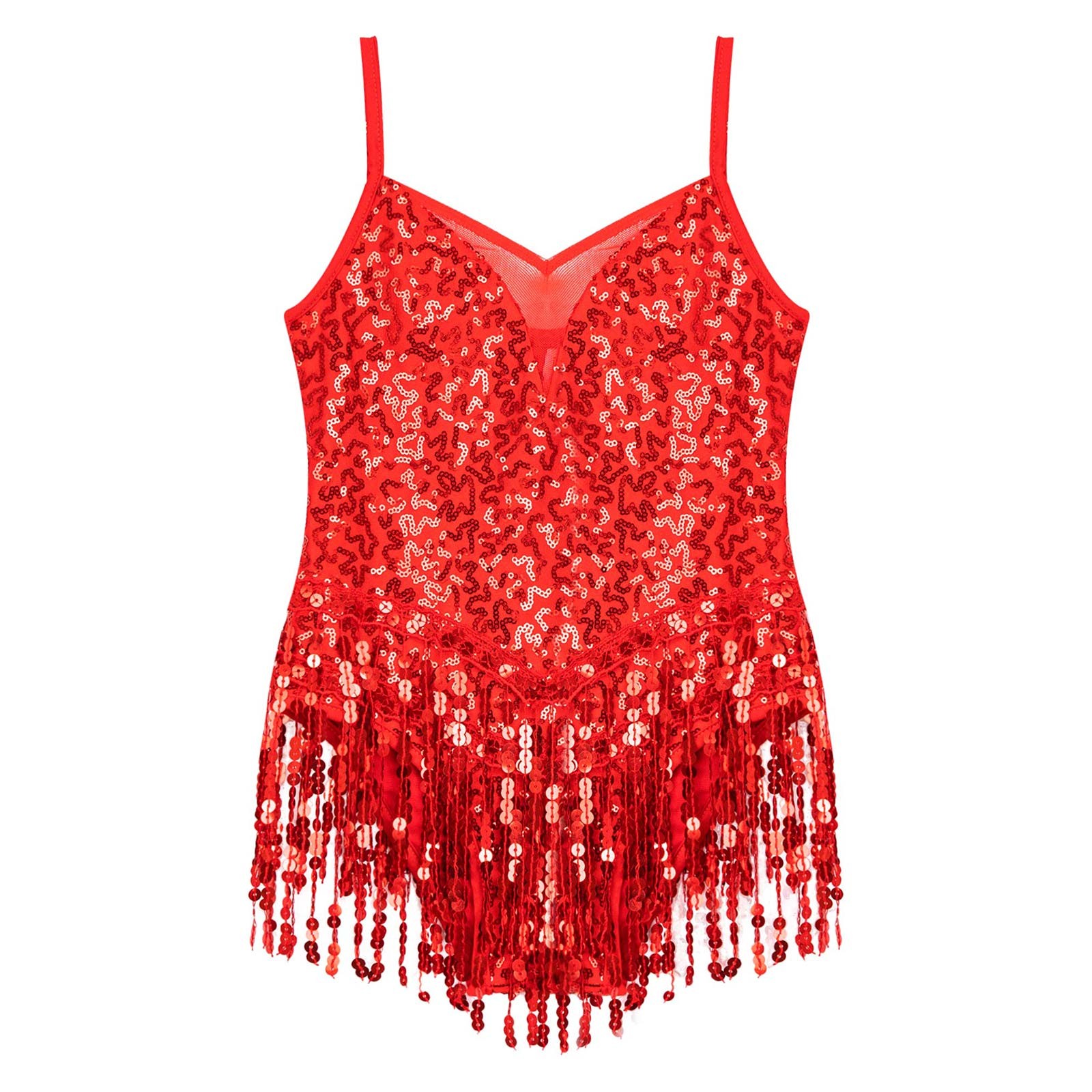 Girls Sparkle Latin Jazz Ballet Camisole Fringed Dress Tassel Modern Dancewear
