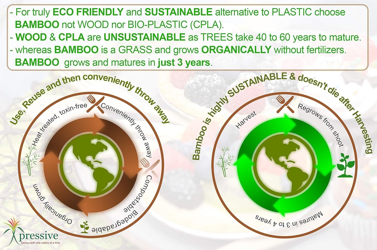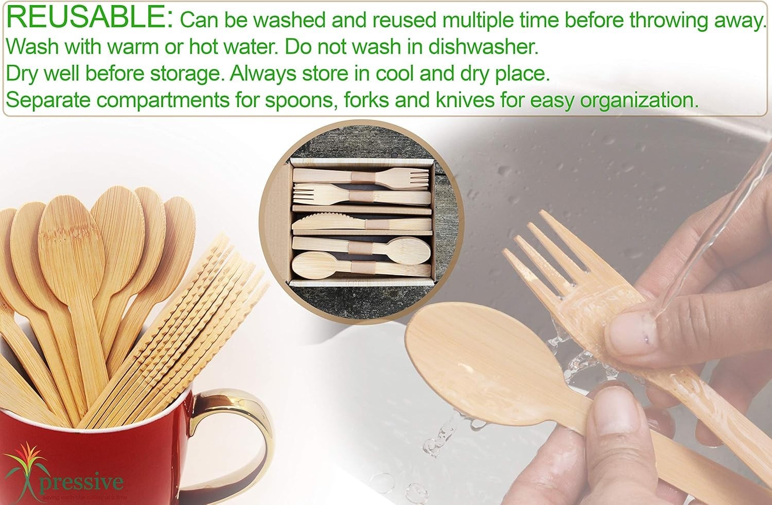100 Bamboo Heavy Duty Disposable Cutlery 100PK:40 Fork 40 Spoon 20 Knife Eco