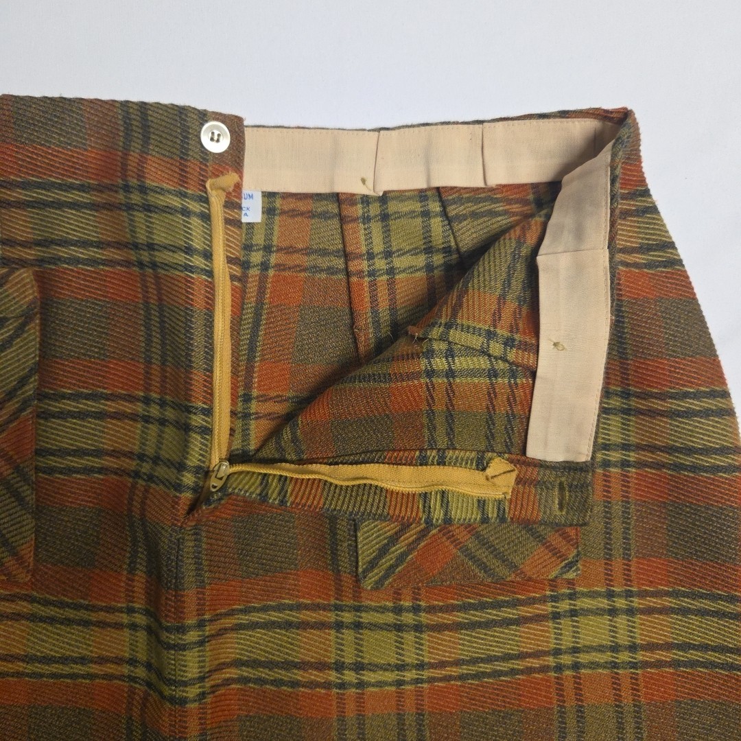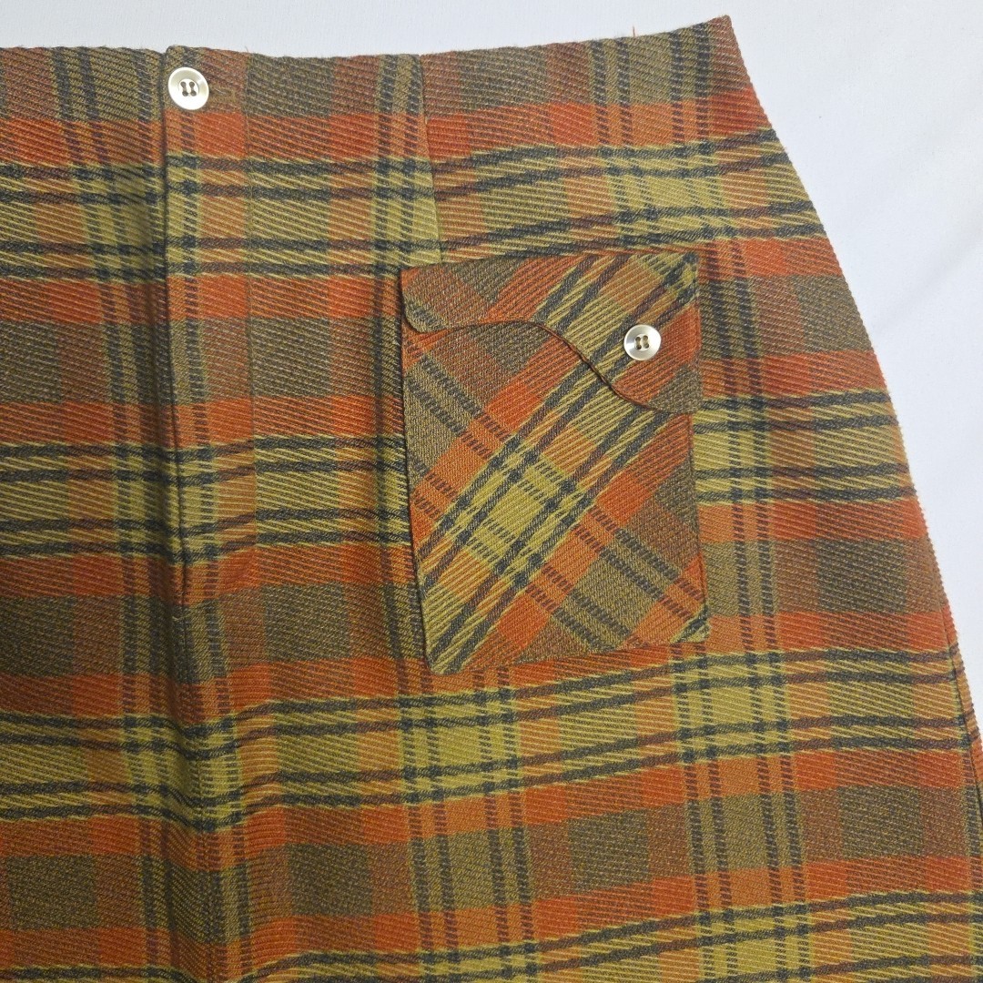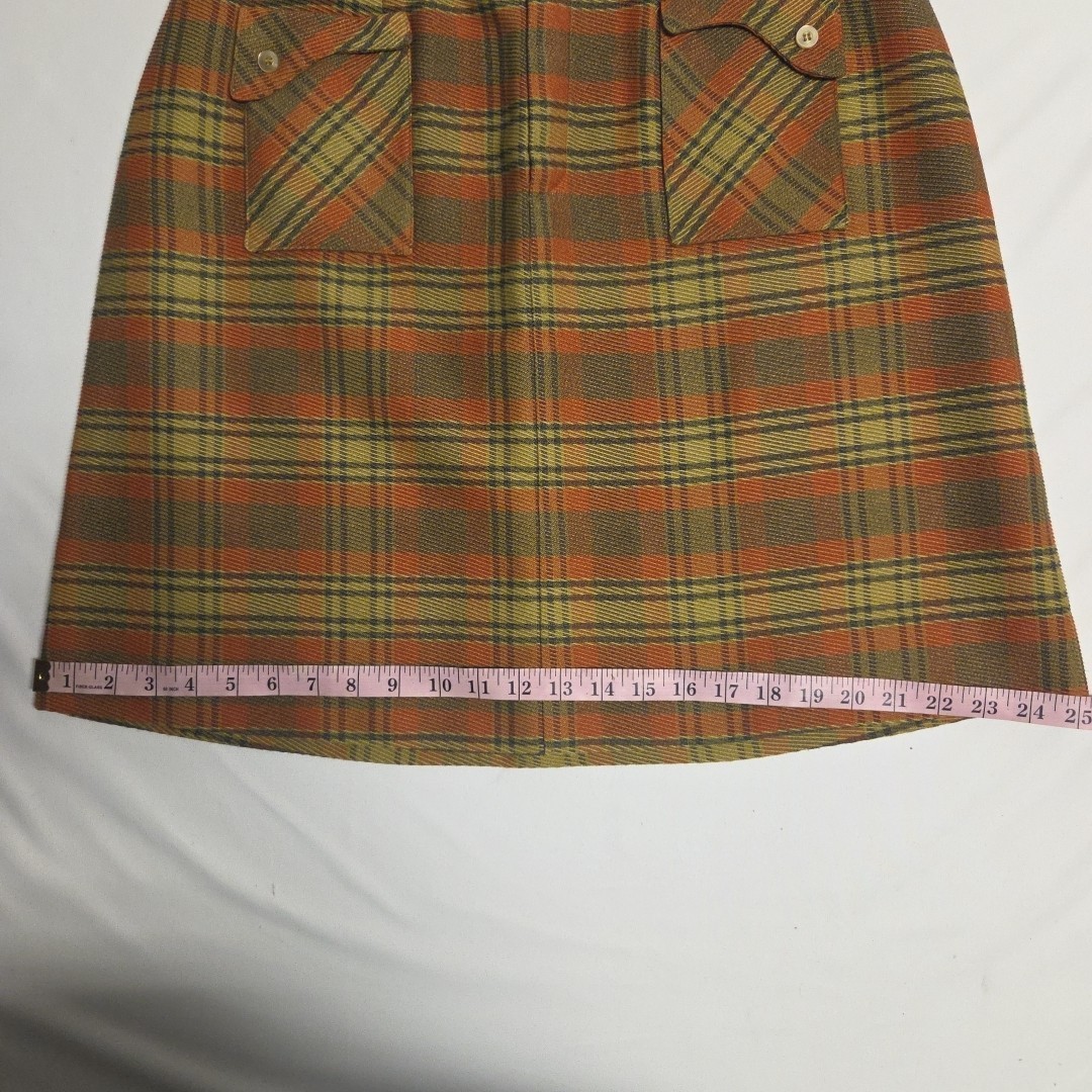 как выглядит Vintage 1970s 1960s rare / HTF orange brown plaid a-line skirt pockets 30" w фото