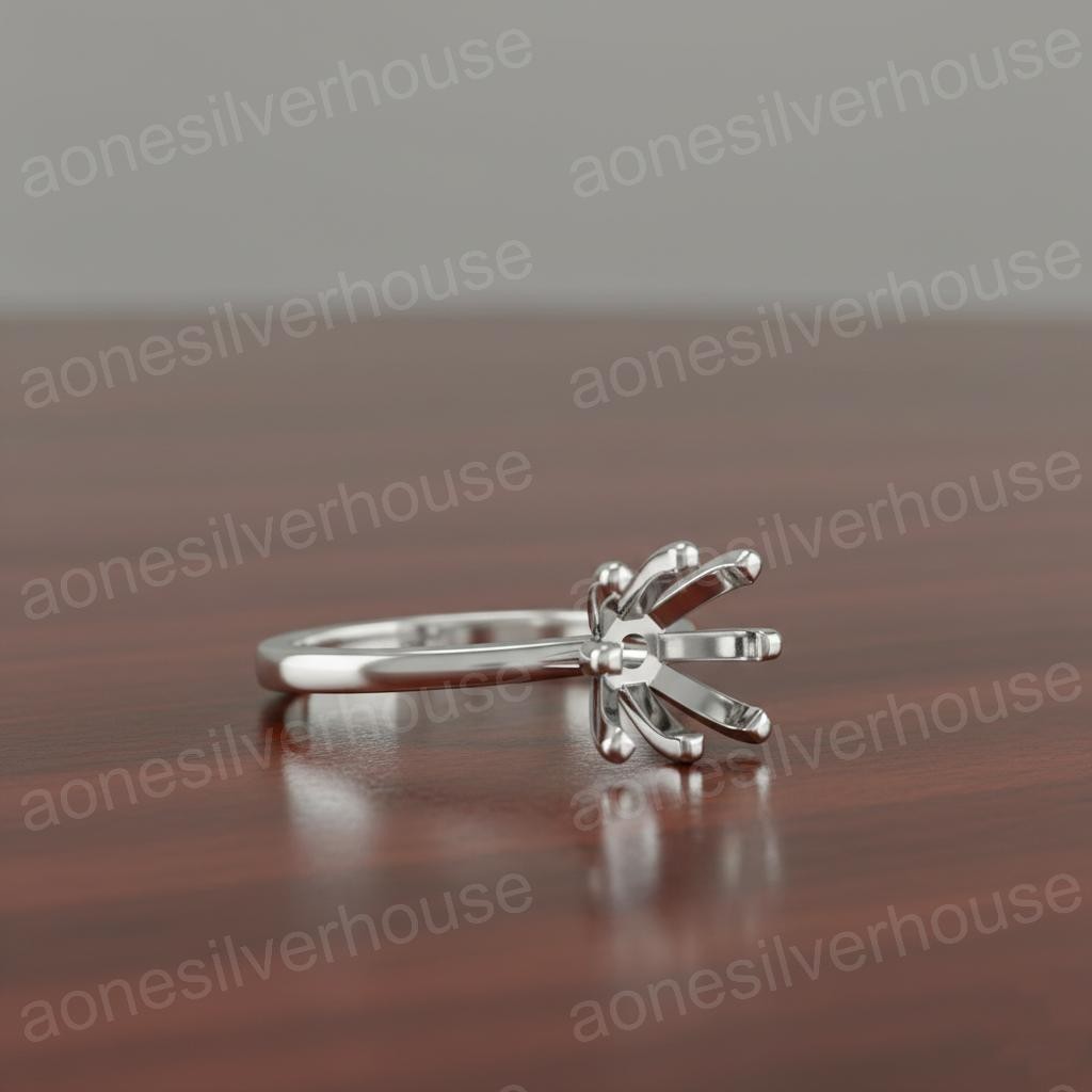 925 Sterling Silver Round Ring Setting-8 Prong Semi Mount Gemstone Mount For Her