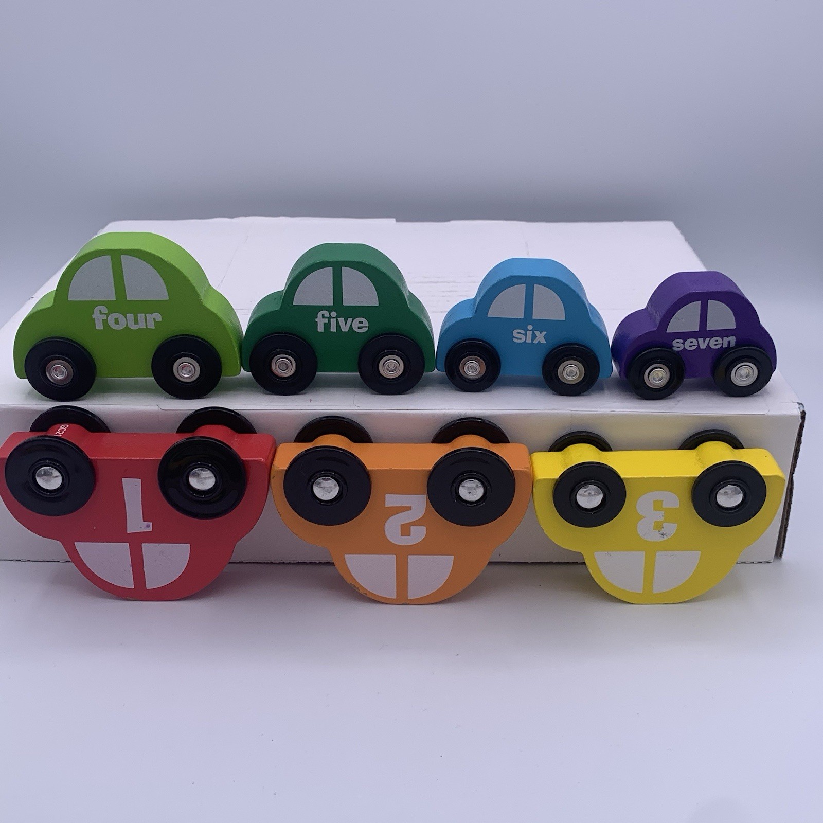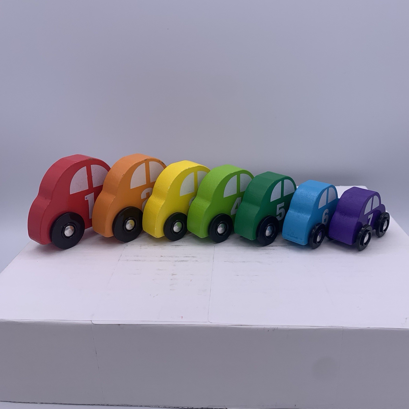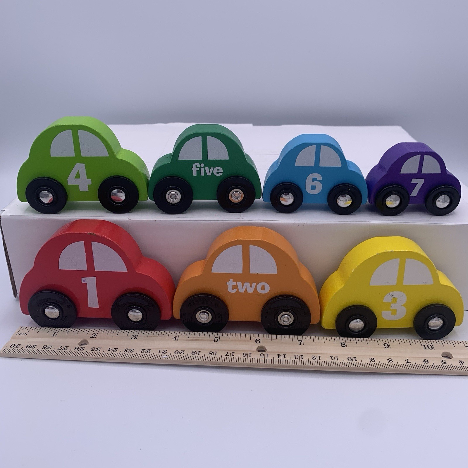 Melissa Doug Wooden Number Cars Complete Set 1-7 Rainbow Colors Numbers Play