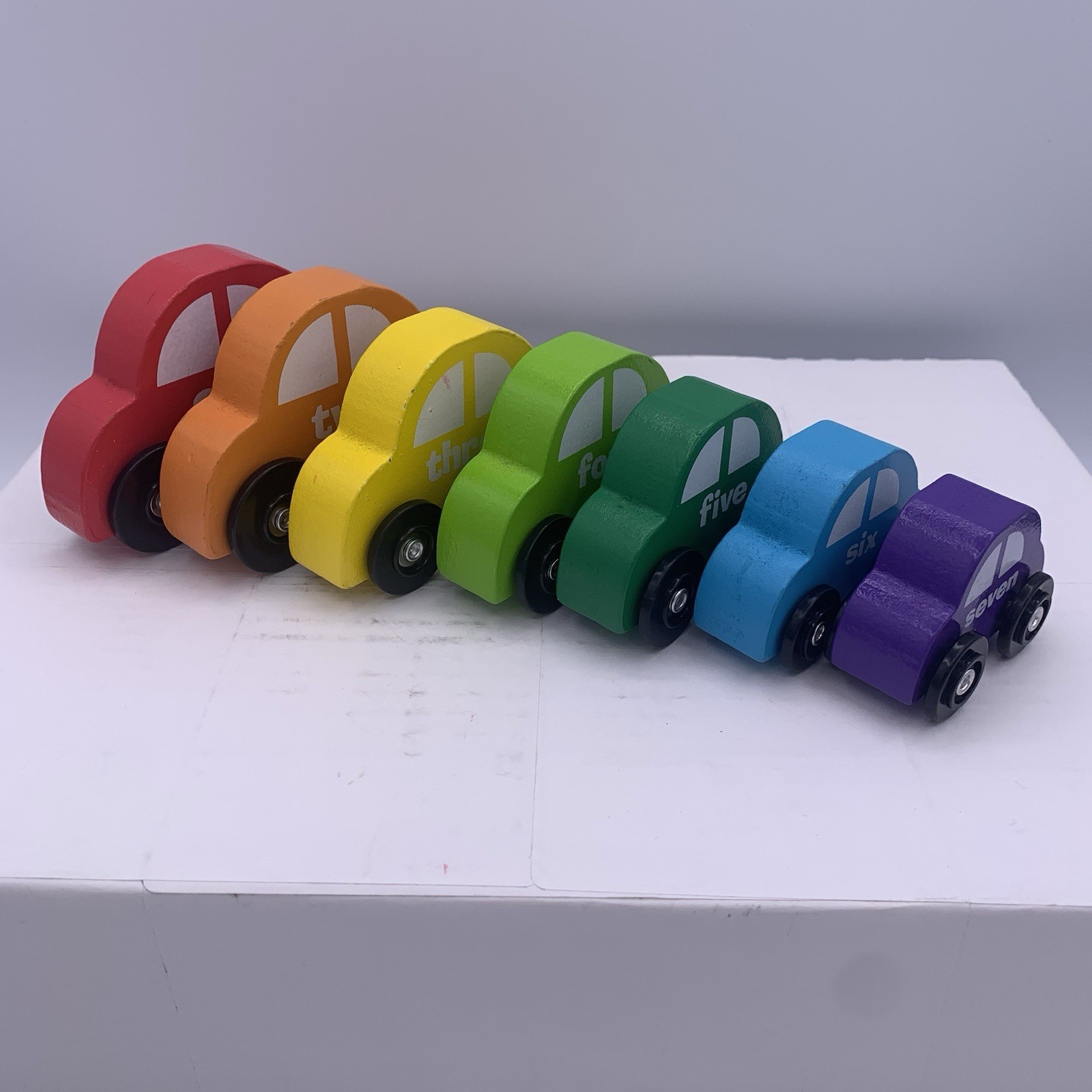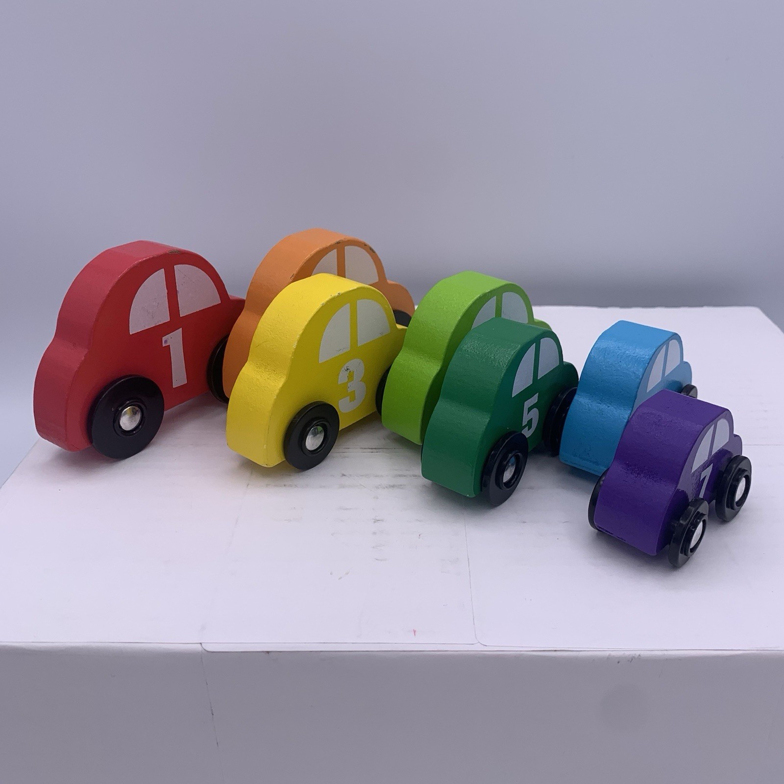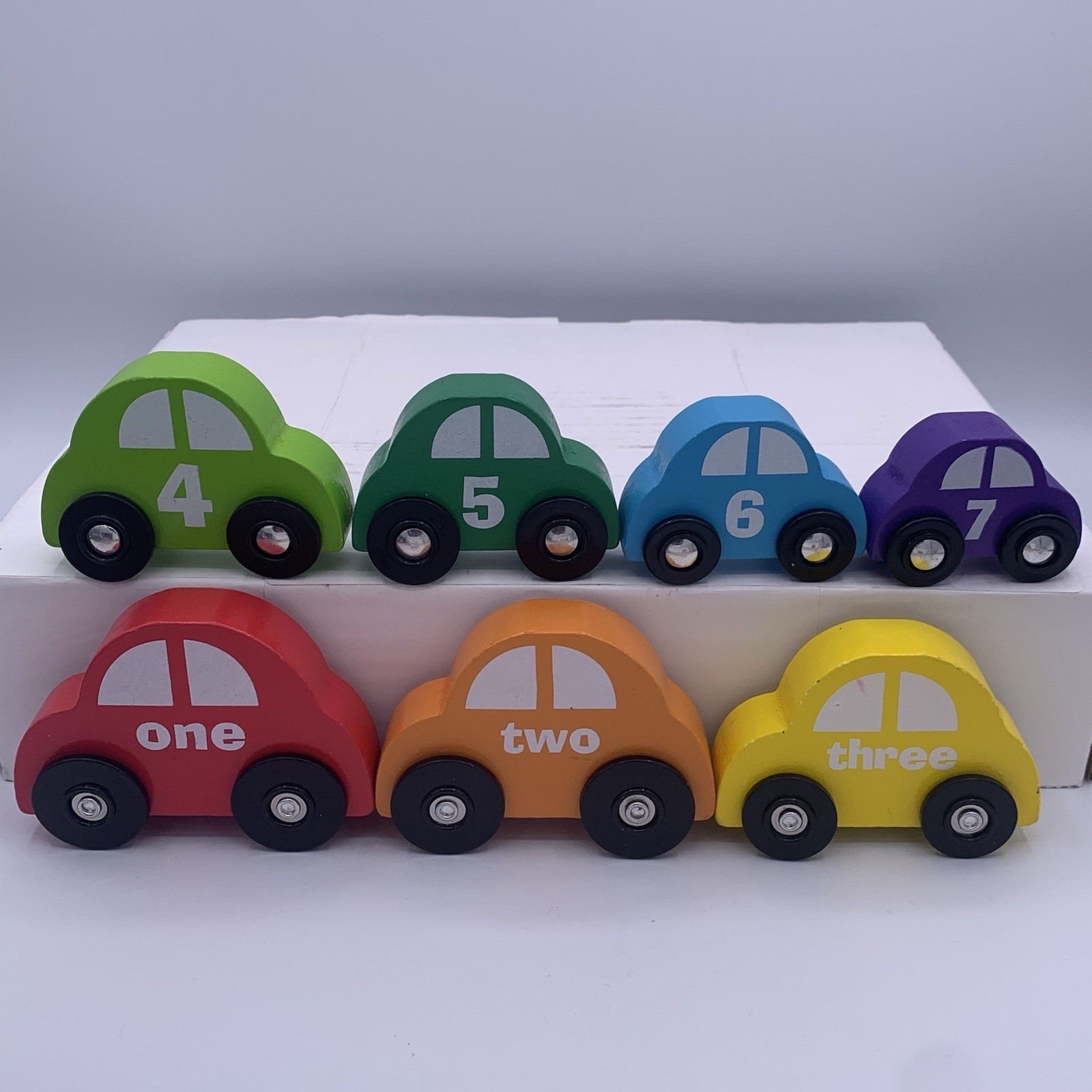 Melissa Doug Wooden Number Cars Complete Set 1-7 Rainbow Colors Numbers Play