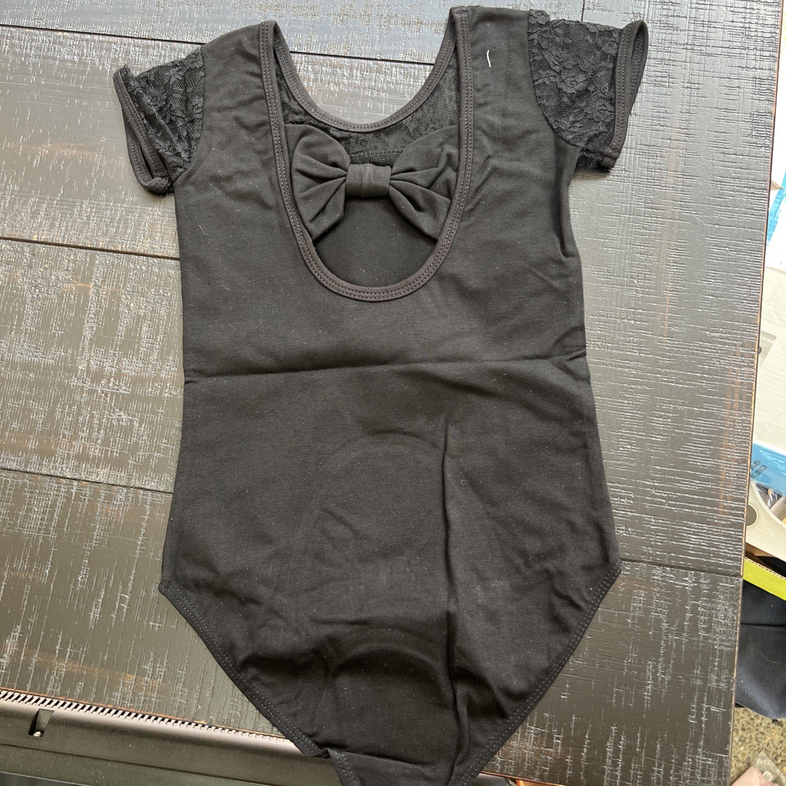 Girls dance ballet leotard tutu dress costume 5-6 yr old black Bow Short Sleeve