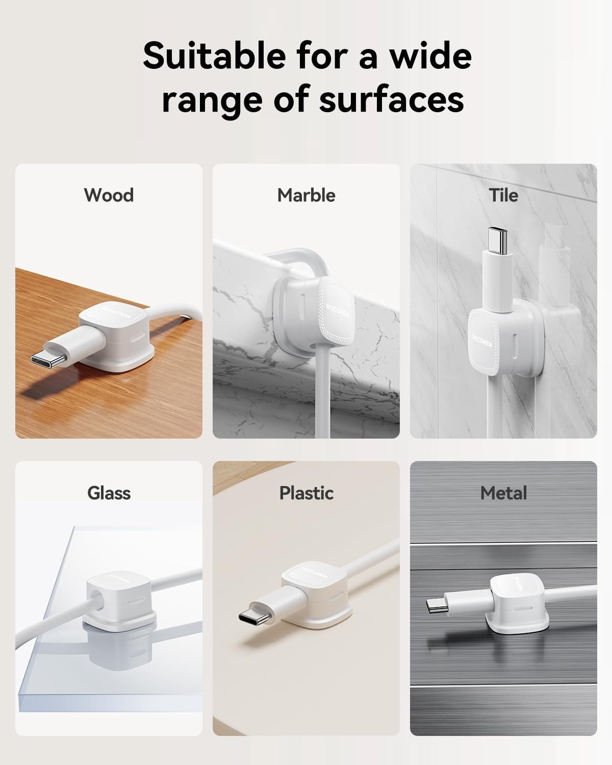6-Pack Magnetic Cable Clips, Smooth Adjustable Adhesive Cord Organizer, Desk ...