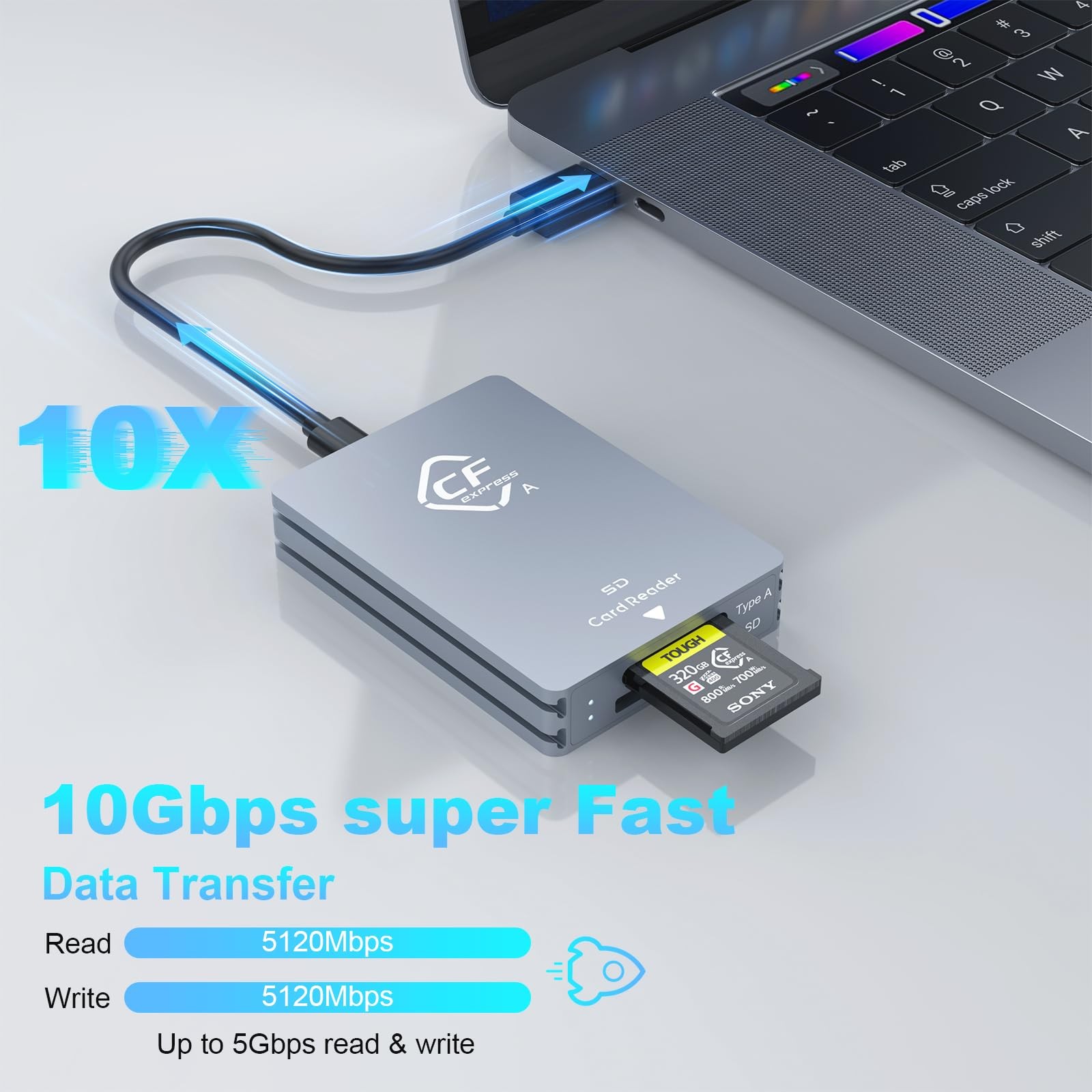 CFexpress Type A and SD Dual-Slot Memory Card Reader, 10Gbps USB 3.2 Gen 2 Ty...