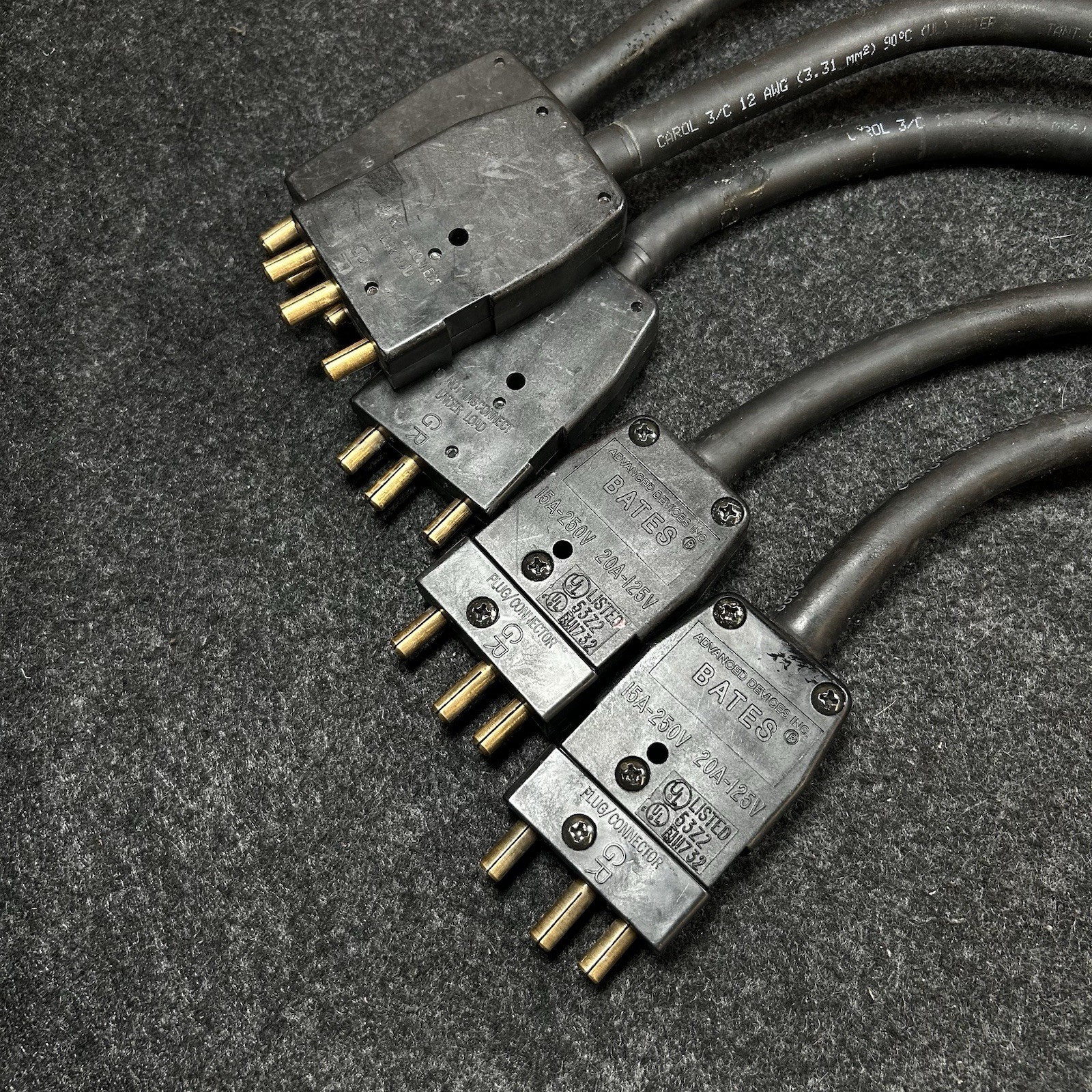 Hubbell Stage Pin Male to Edison Female Adapter 600V Power Cable 1 ft Lot Of 5