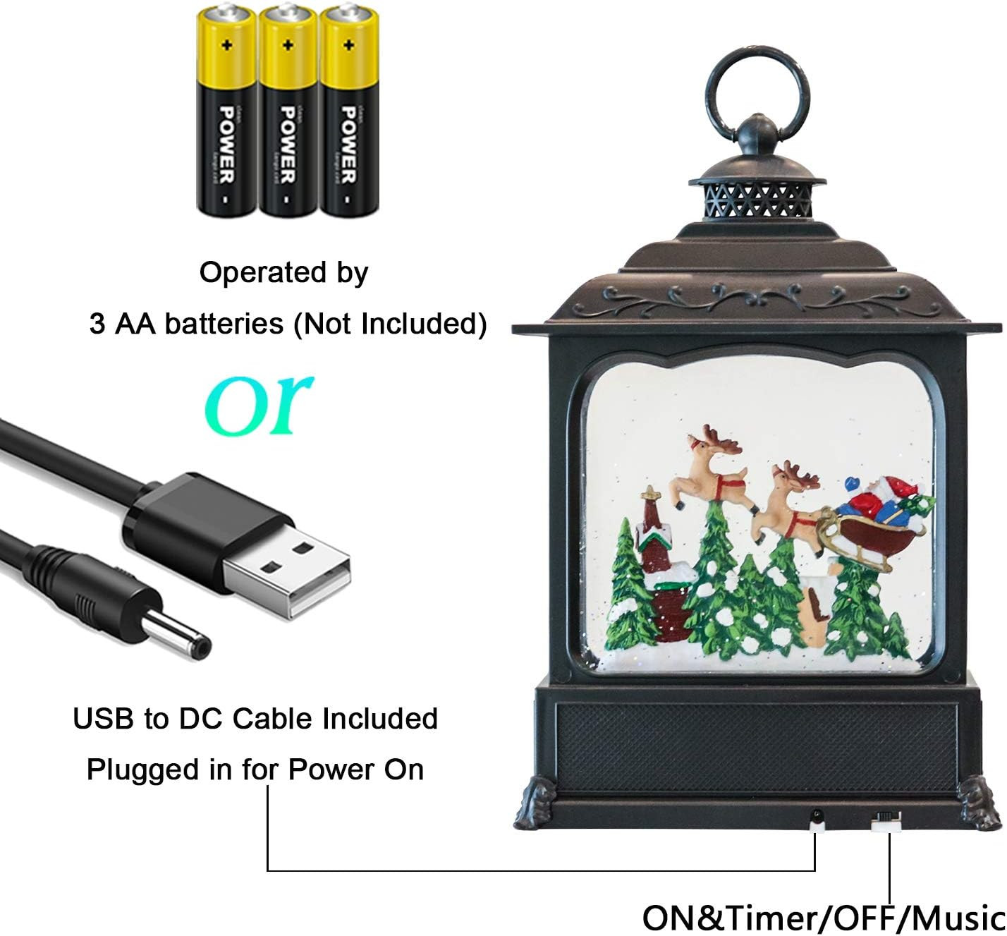 Christmas Musical Snow Globe Lantern 11.2 Inch USB Battery Operated