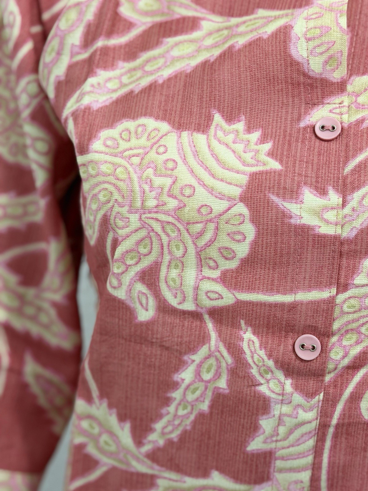 Pink Cotton Floral Kurta for Women with 3/4 Sleeves and Matching Pants