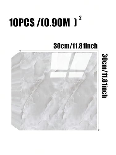 10pcs Marble Peel and Stick Backsplash Tiles - Waterproof PVC Wall Panels for Ki