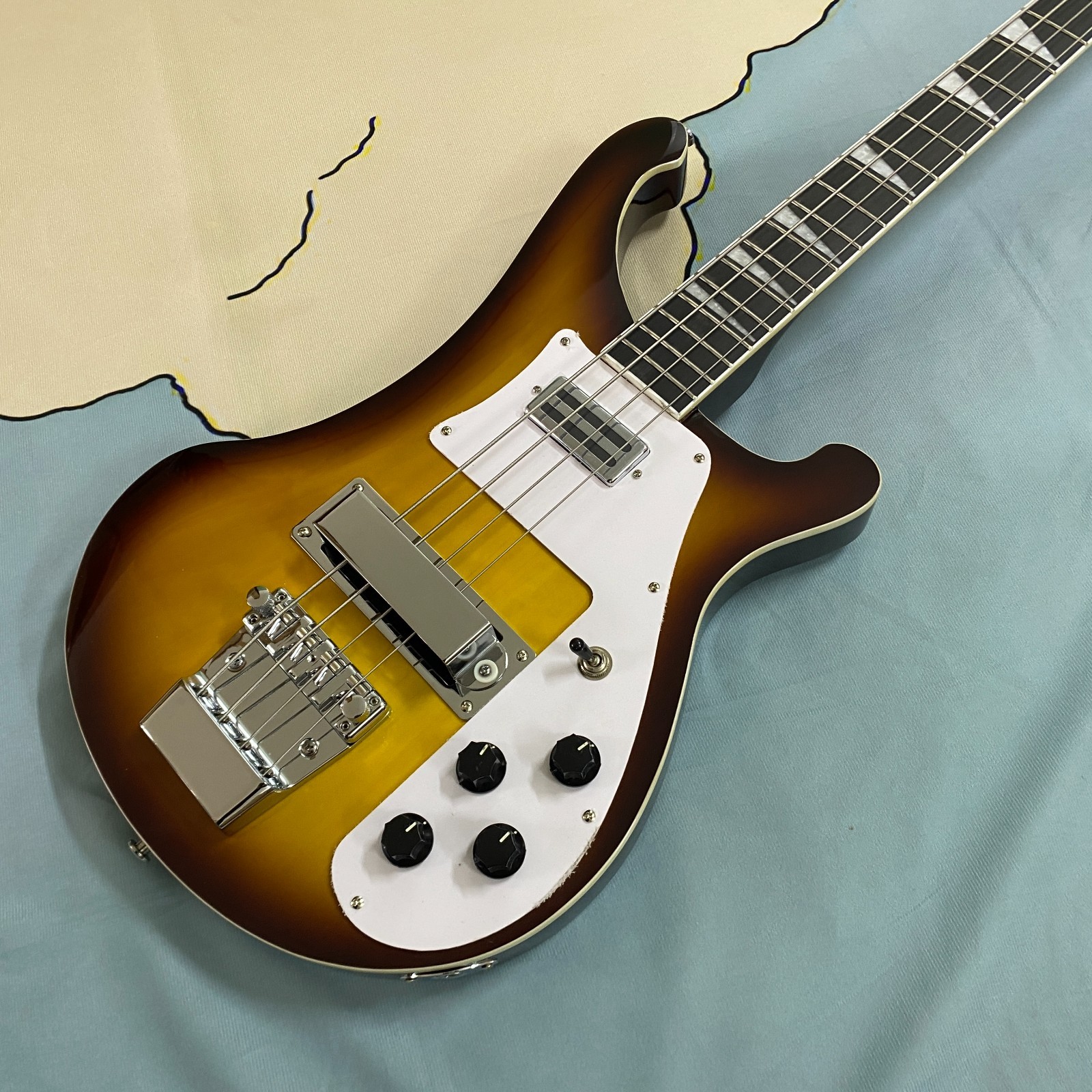 как выглядит 4003 Style Electric Bass Guitar, Sunburst Finish, 4 String, Chrome Hardware фото