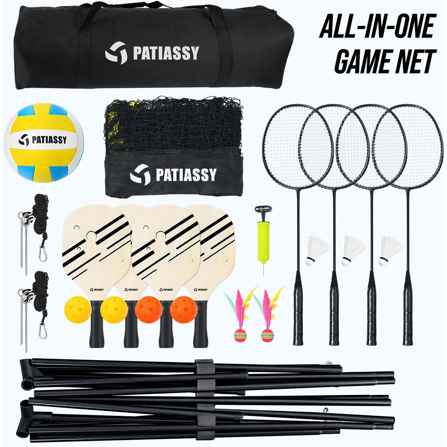 5.1ft-7.4ft Professional Volleyball Badminton Pickleball Net Set with Poles Bag