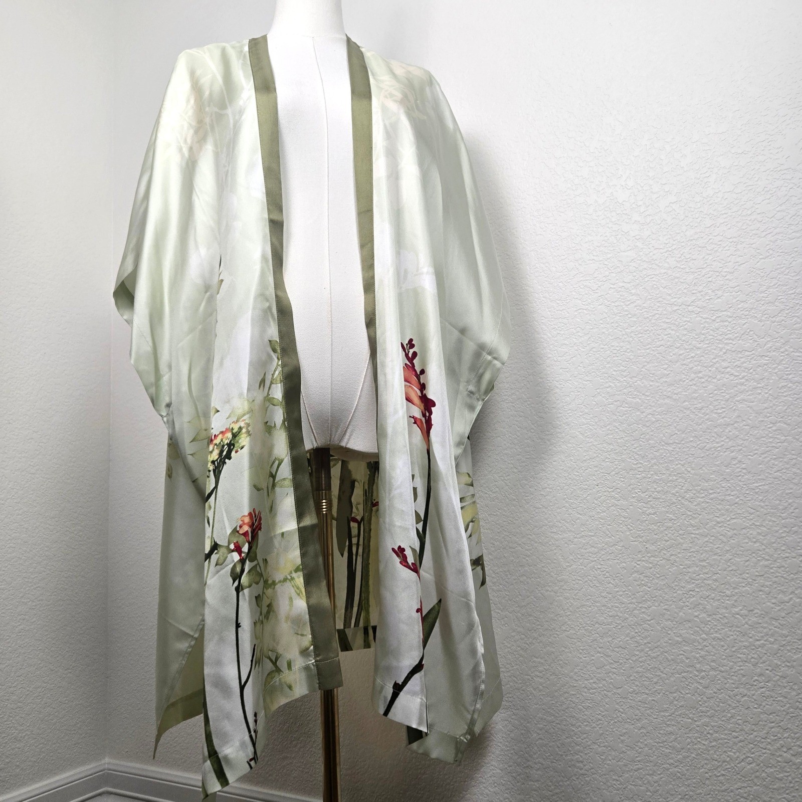 100 Silk Floral Kimono Topper Open Front Botanical Sage Green NWT Chico's