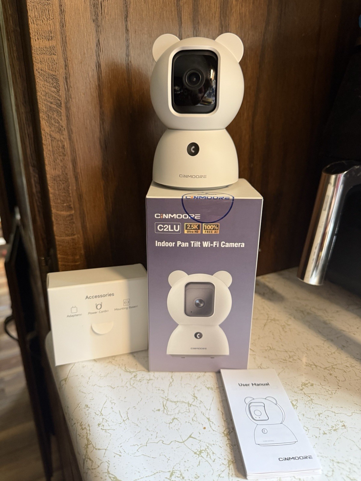 как выглядит CINMOORE C2LU Indoor Pan Tilt Wi-Fi Surveillance Camera 2.5K Ultra HD White фото
