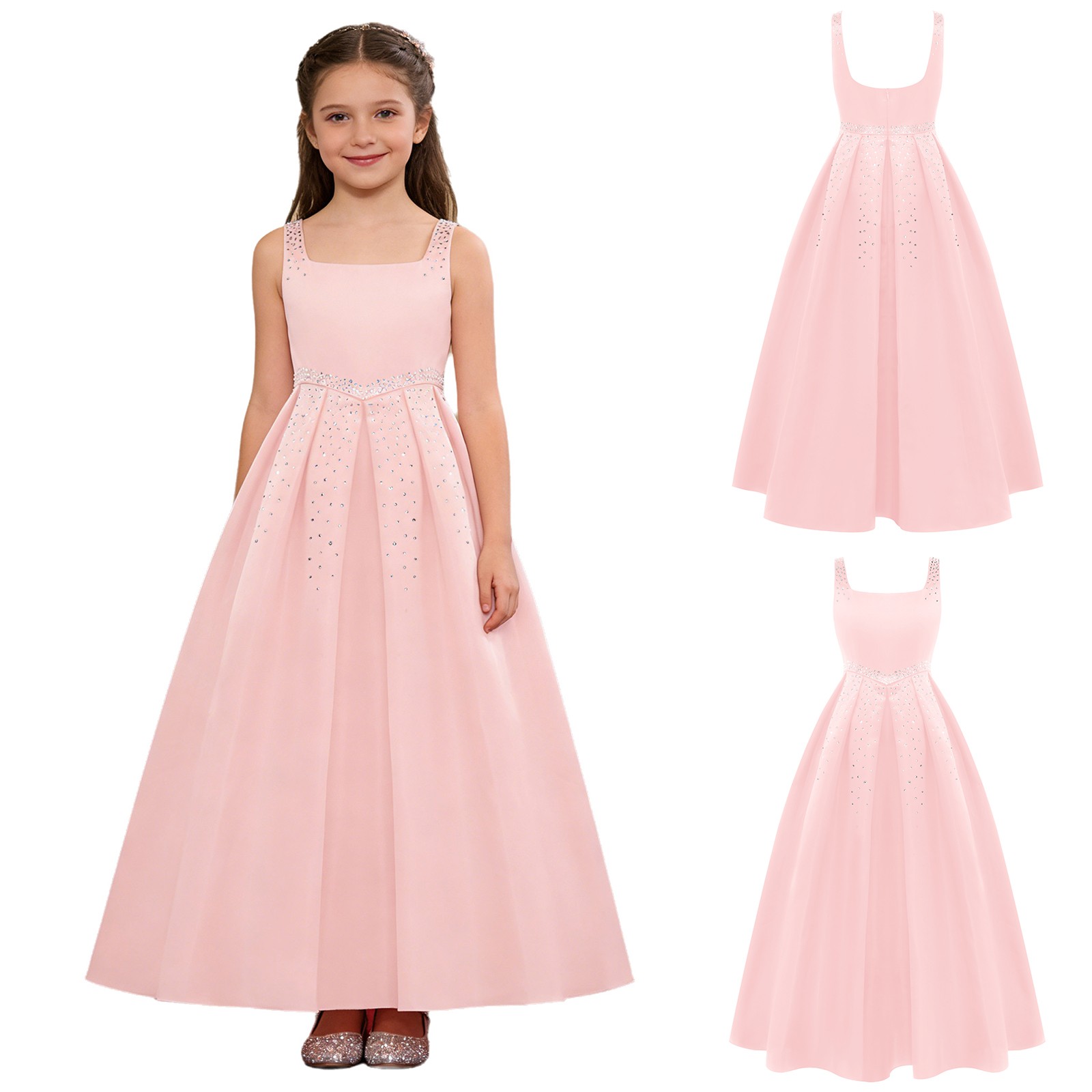 как выглядит Kids Girls Ball Gown Baptism Dress Square Neck Evening Elegant Wedding Hem Chic фото