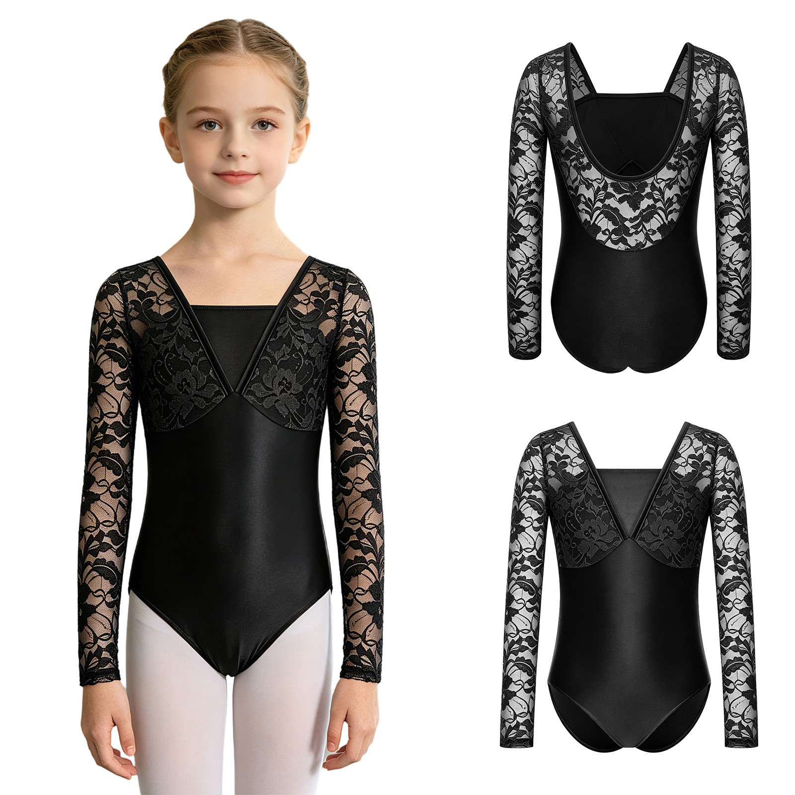 как выглядит Kids Girls Bodysuit Sparkly Dancewear Crotch Leotard Practice Patchwork Glitter фото