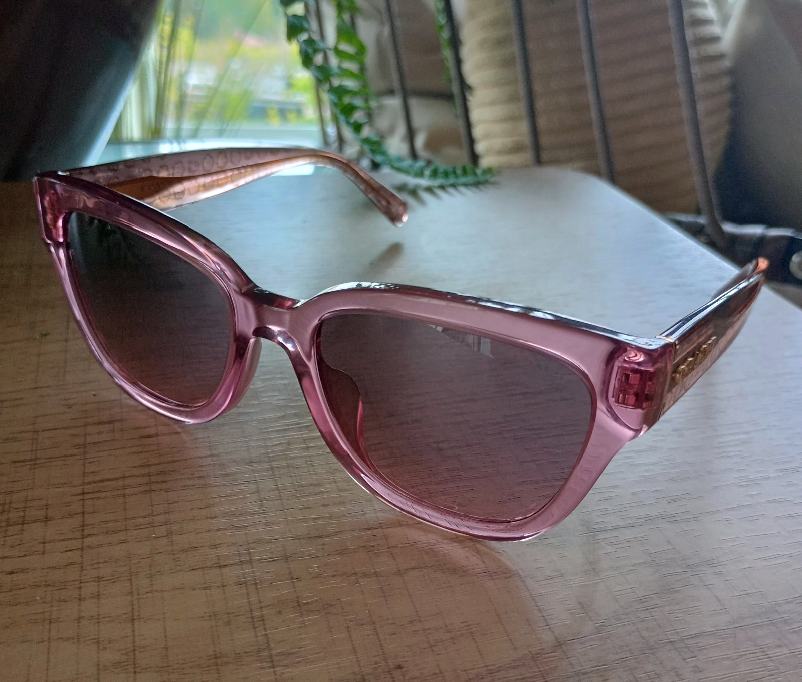 как выглядит COACH HC8379U 580046 Womenss Sunglasses Transparent Berry/Gradient Grey-Pink фото
