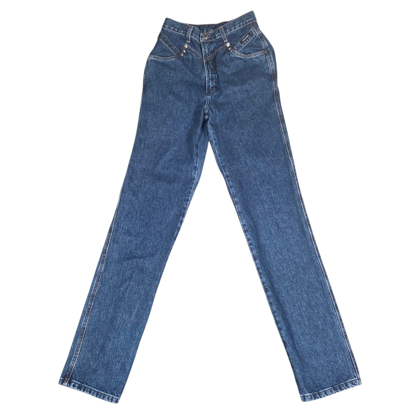 Vtg Rocky Mountain Rockies Blue High Waist Denim Jeans Sz 28/34 USA Vintage