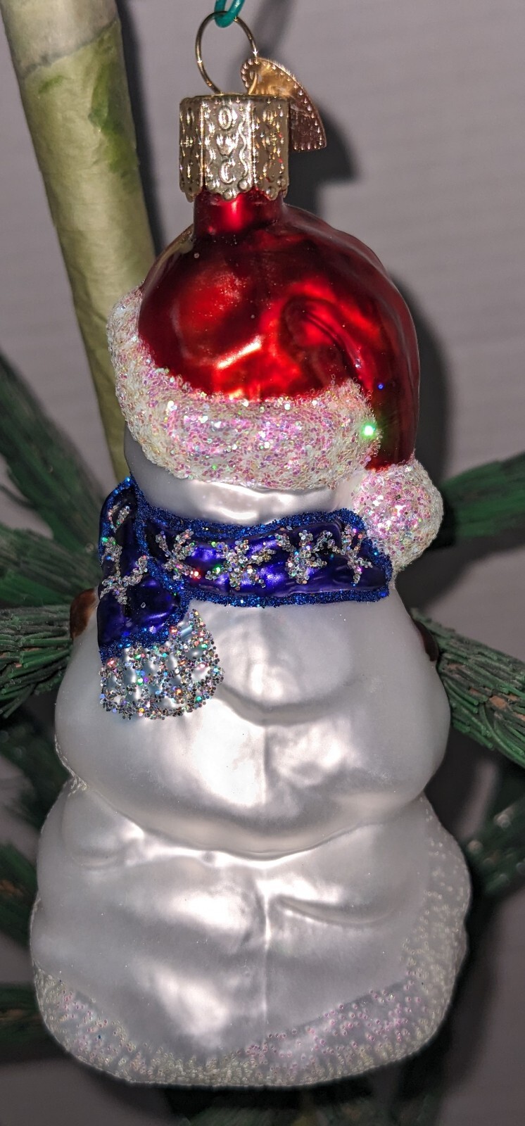 Old World Christmas Snowman Glass Ornament Happy Retired Hand Painted Smiling