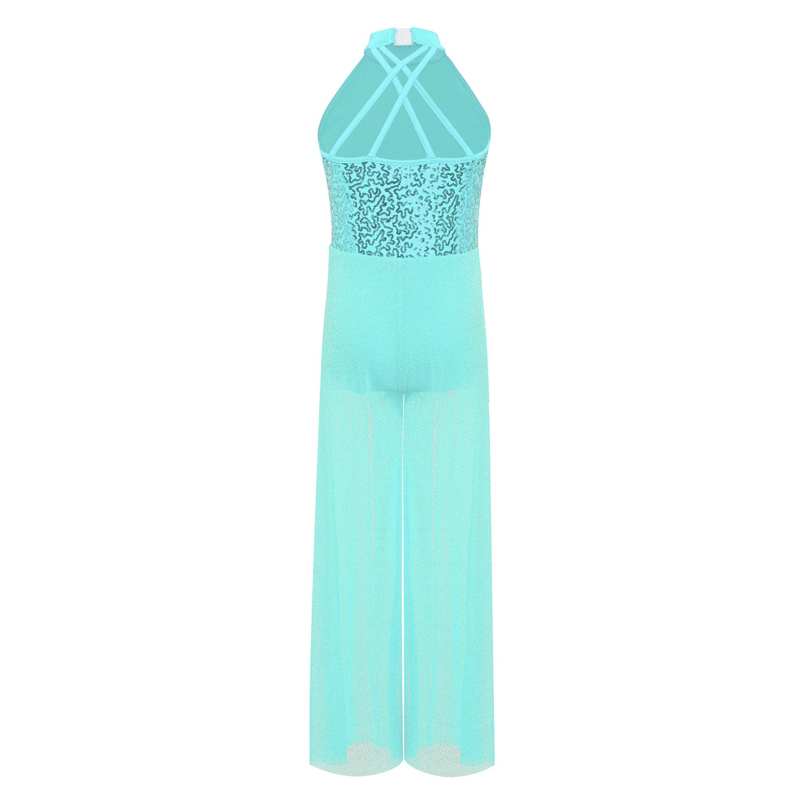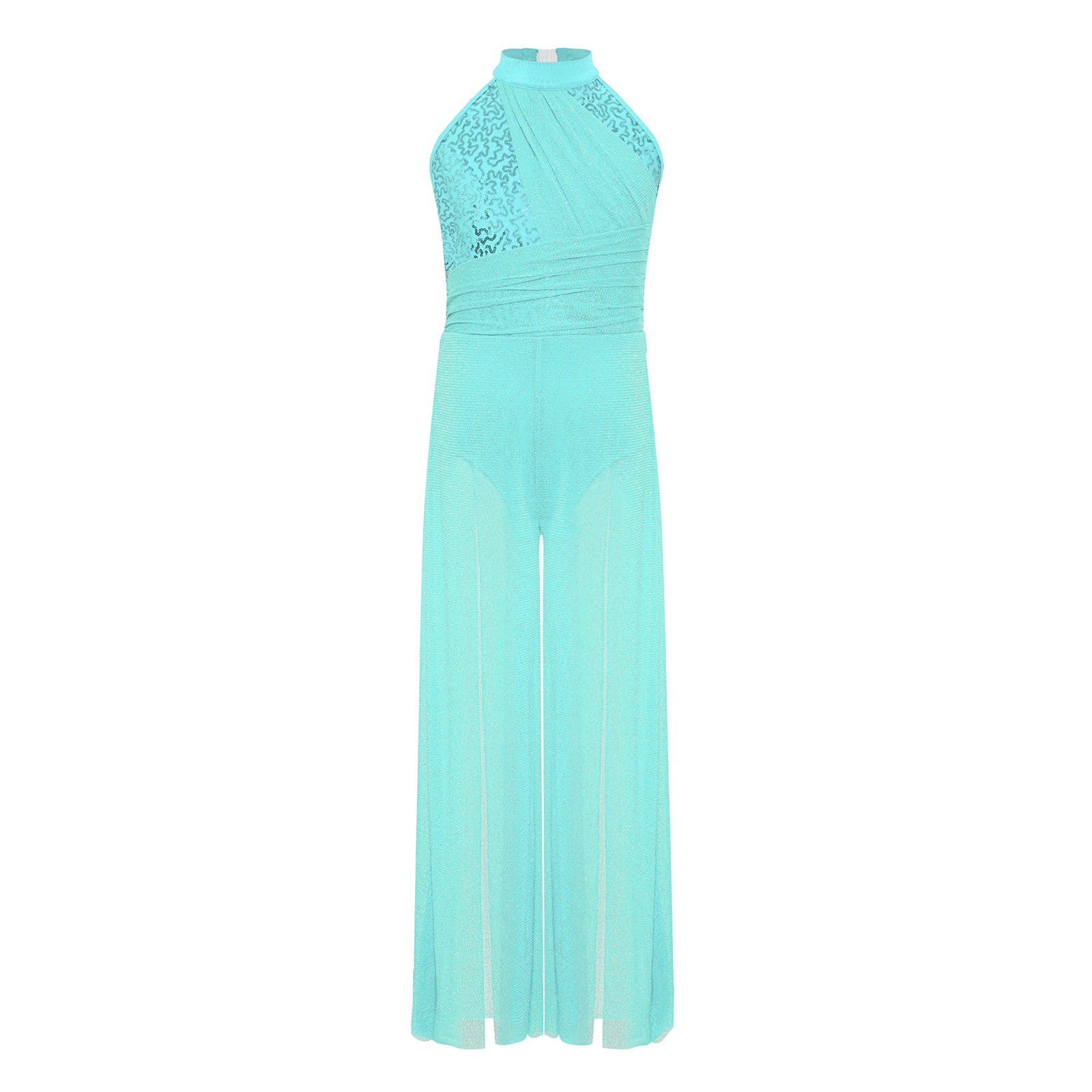 Girls Lyrical Dance Bodysuit Dress Mesh Ballet Leotard Sheer Wide Leg Jumpsuit