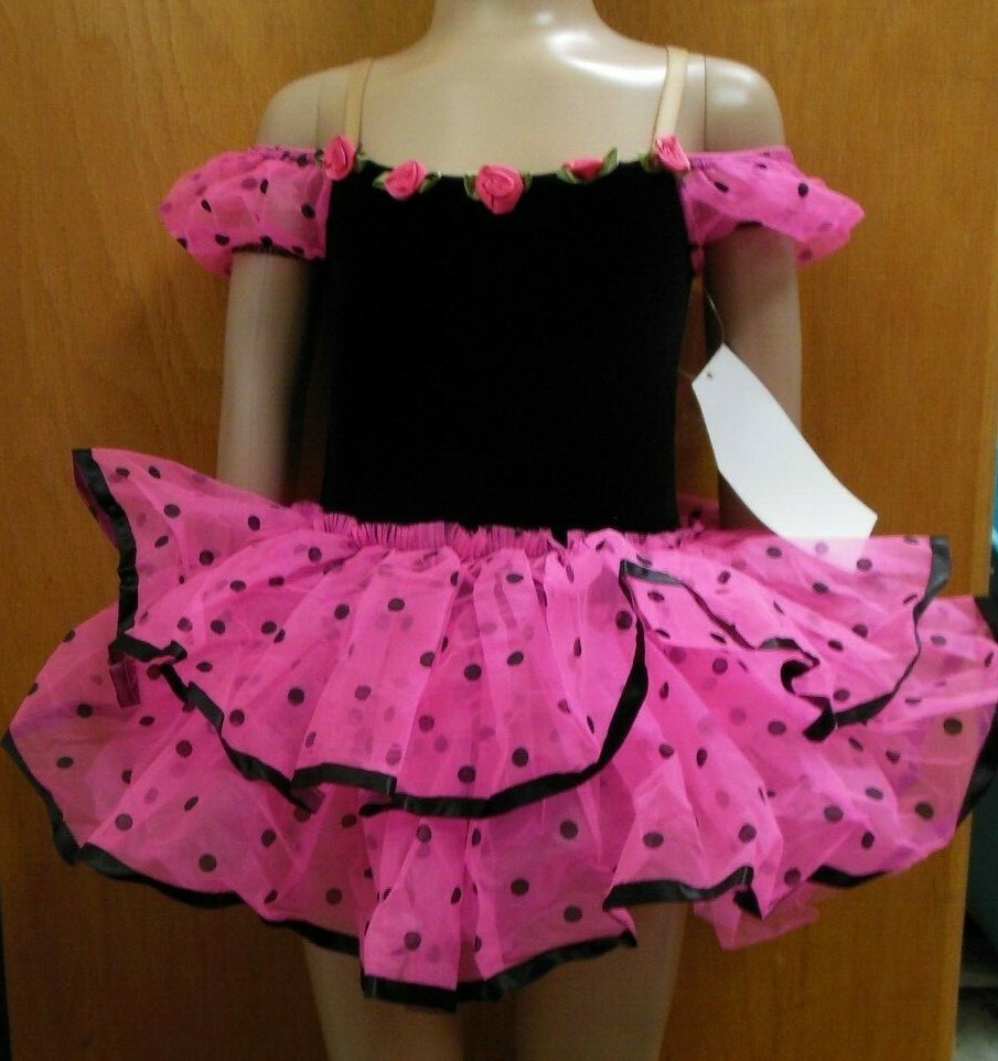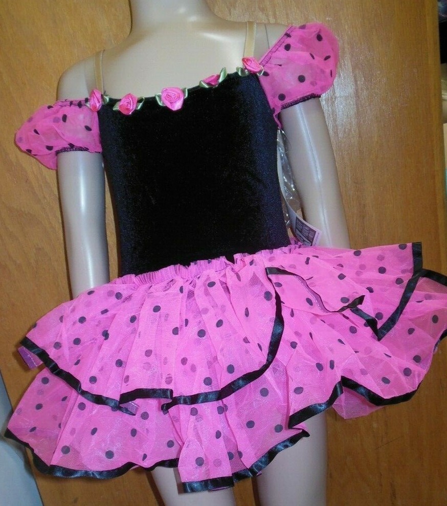 как выглядит Girls Ruffled Tap Costume Hot Pink Black Velvet large Child over 70 available фото