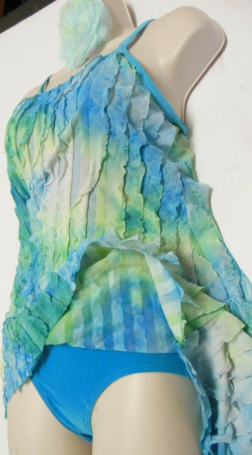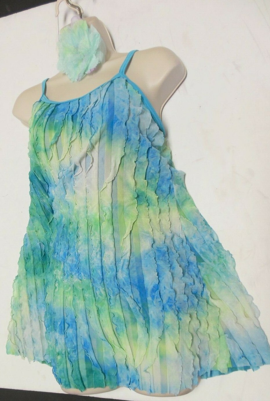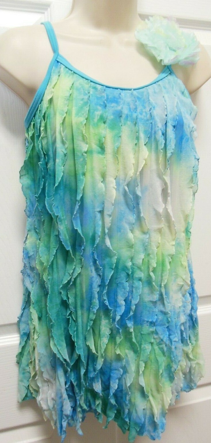 Pleated Ruffled Cami lyrical dance costume tiedye leotard underneath ladies szs