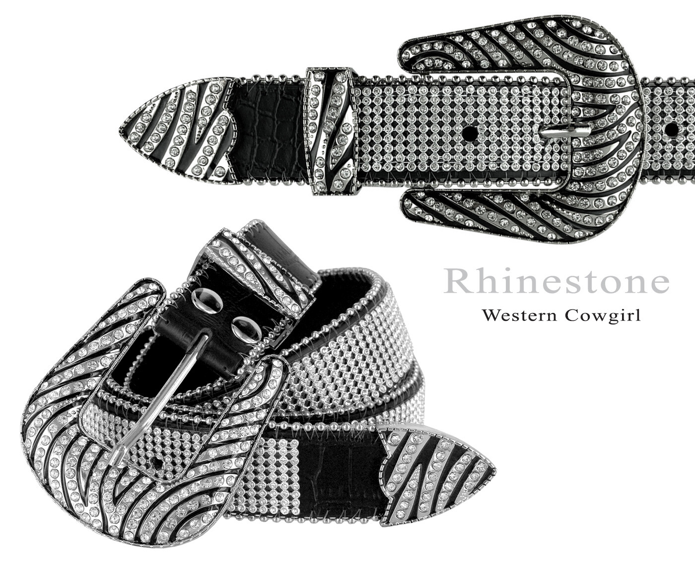 Rhinestone Western Cowgirl Bling Dazzling Mesh Design Leather Belt 1-1/2 38mm