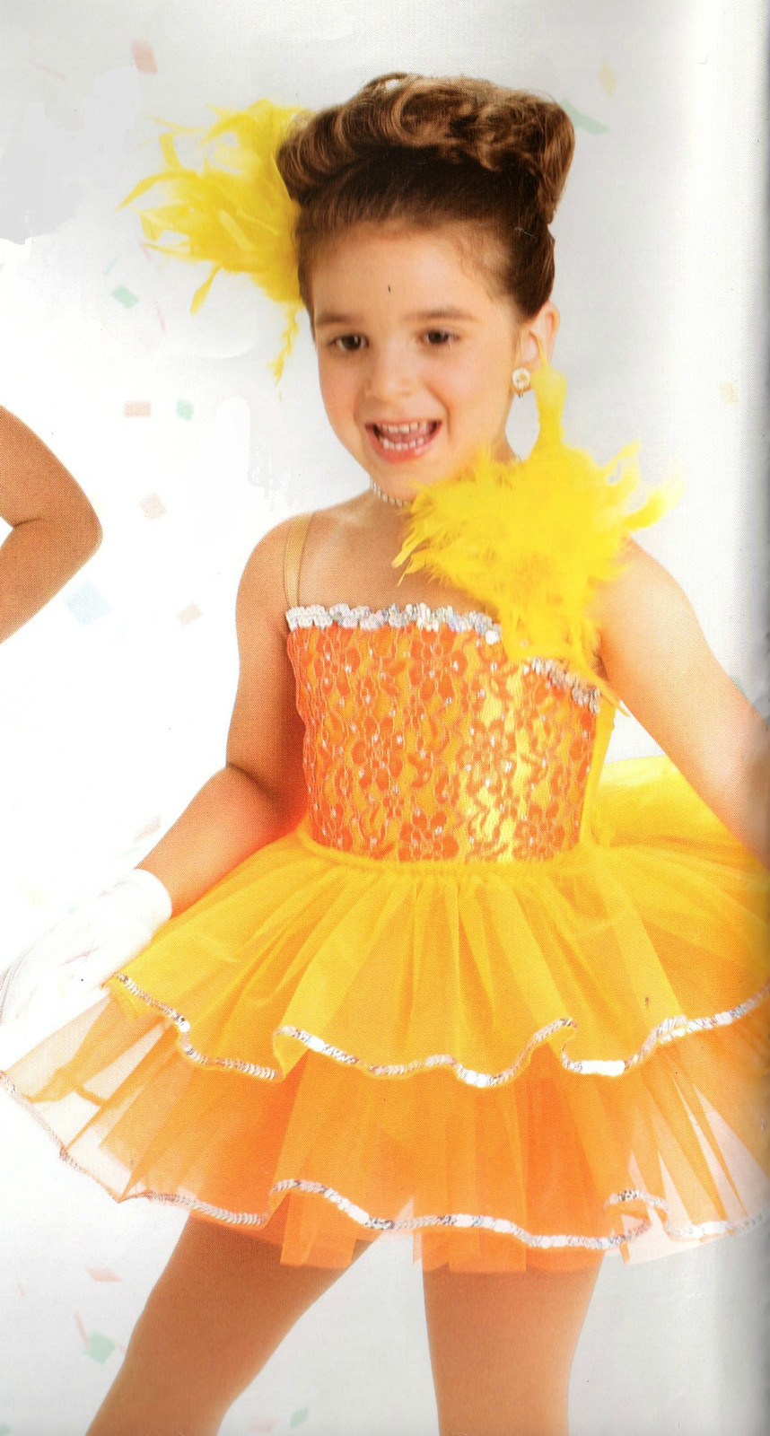 как выглядит Yellow ORANGE Dance Costume Tap Lace Tot size Chicks Ducks Feather sequin trim фото