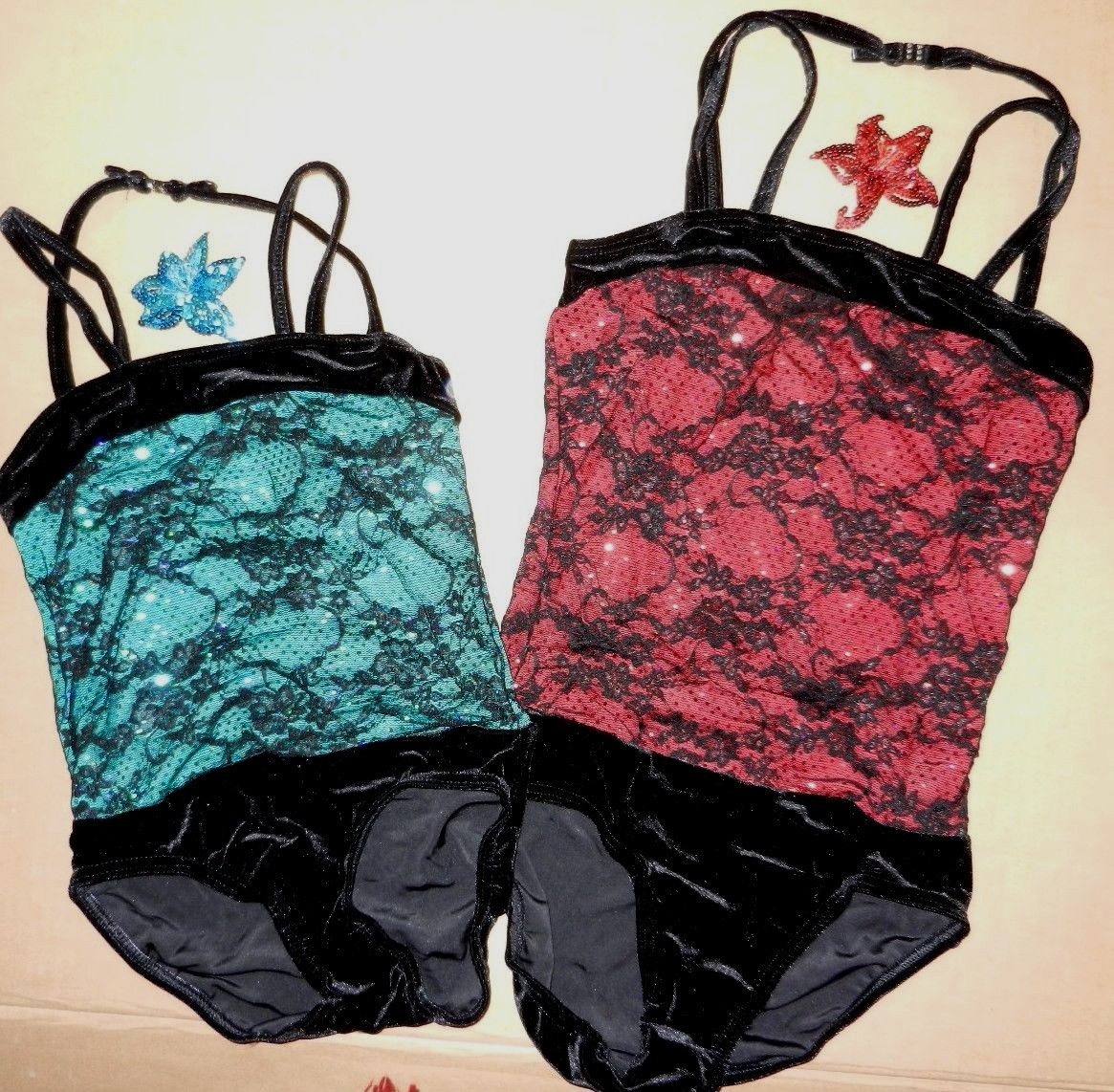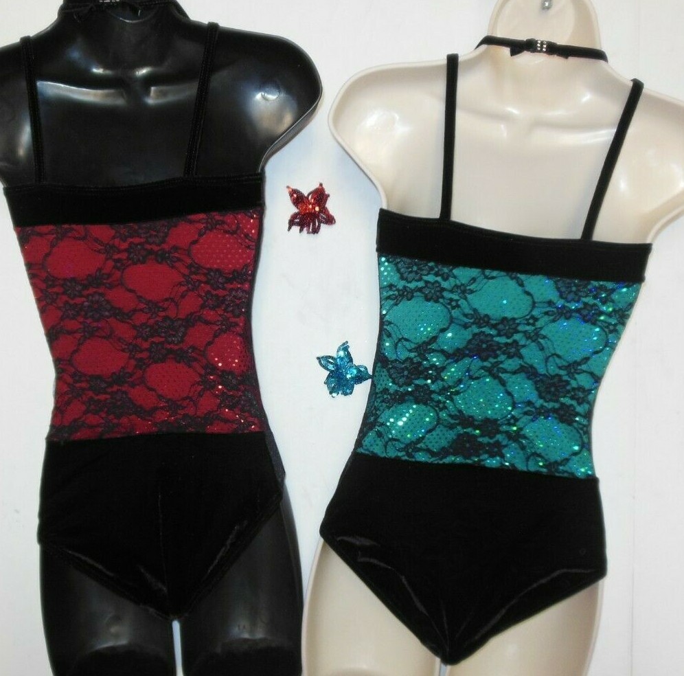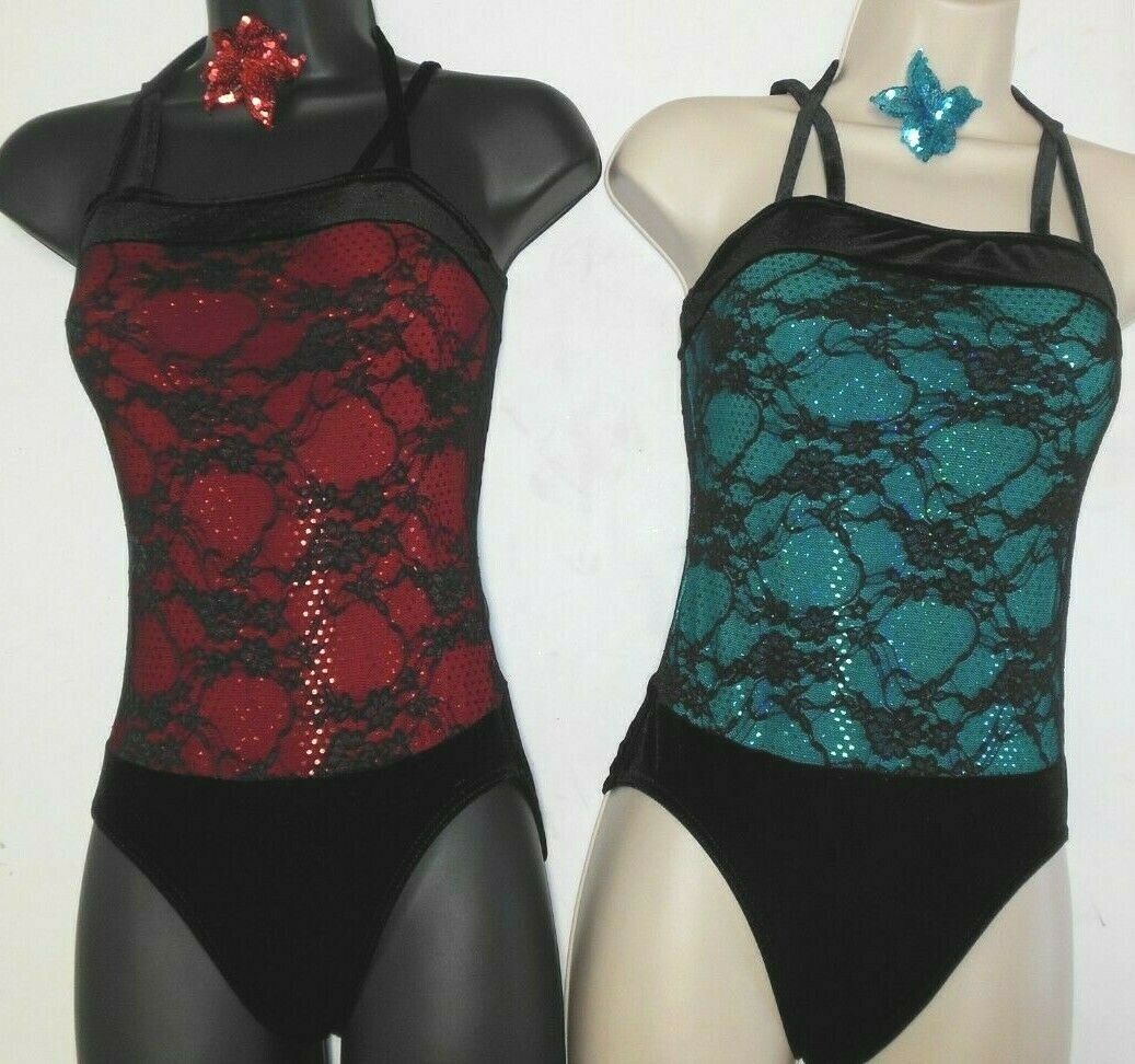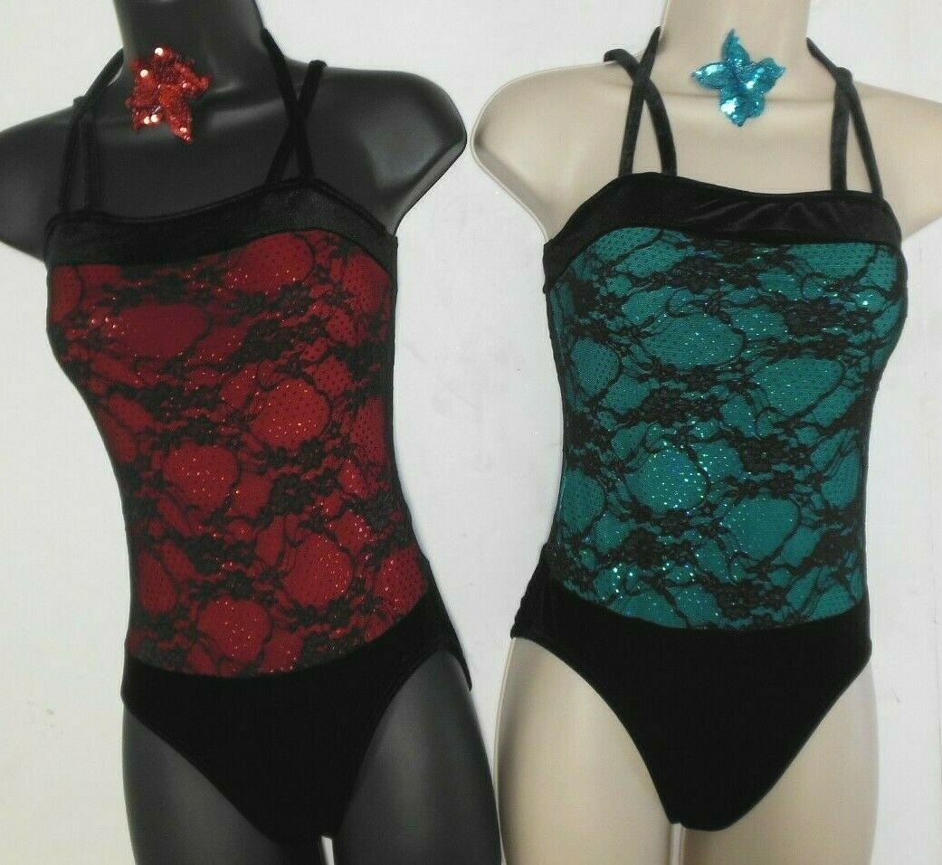 Lace over sequin Dance costume leotard Tap Jazz sparkle Velvet crisscross child