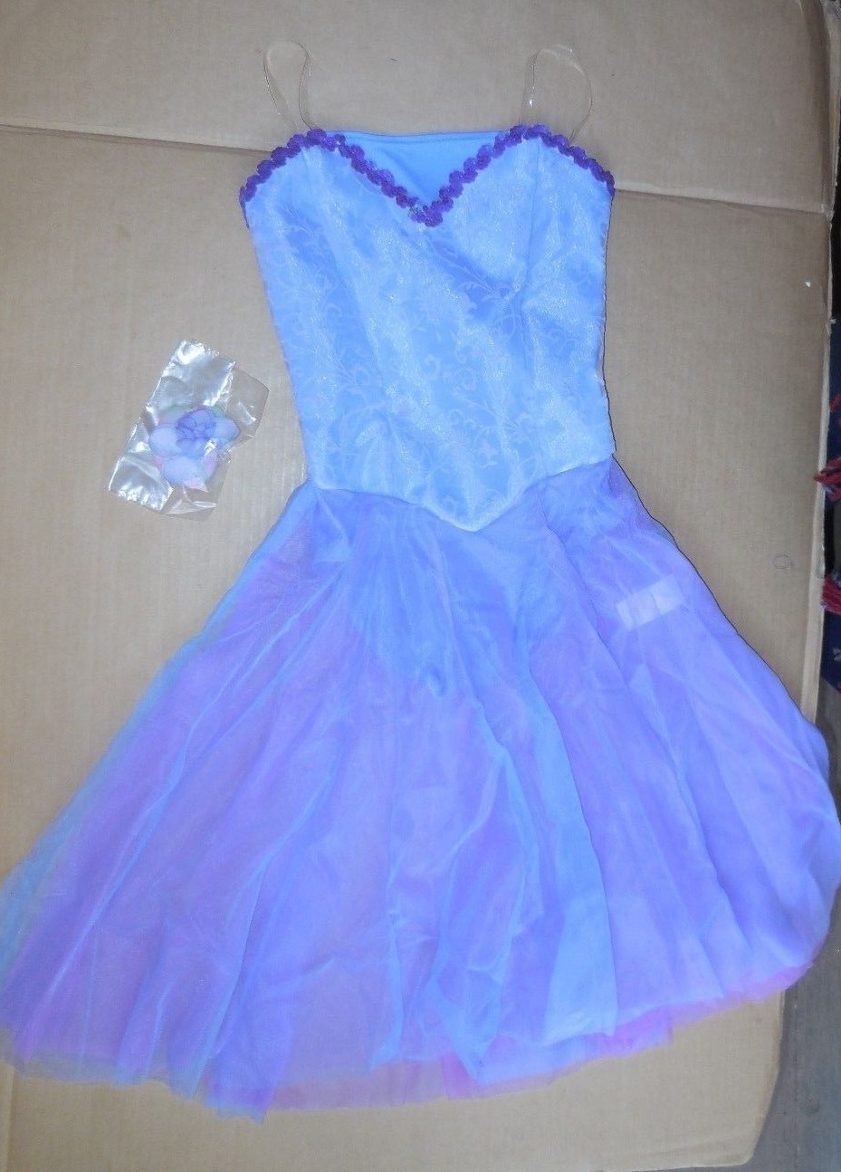 NWT ROMANTIC LENGTH BALLET COSTUME Lilac Blue Embossed Organza Girls sizes