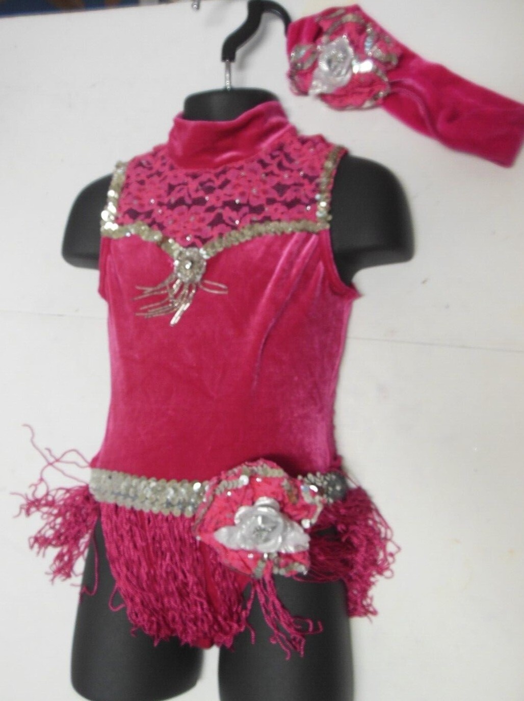 как выглядит NWOT Velvet Rasberry Leotard w/ fringe skirt Headpiece Small child Lace фото