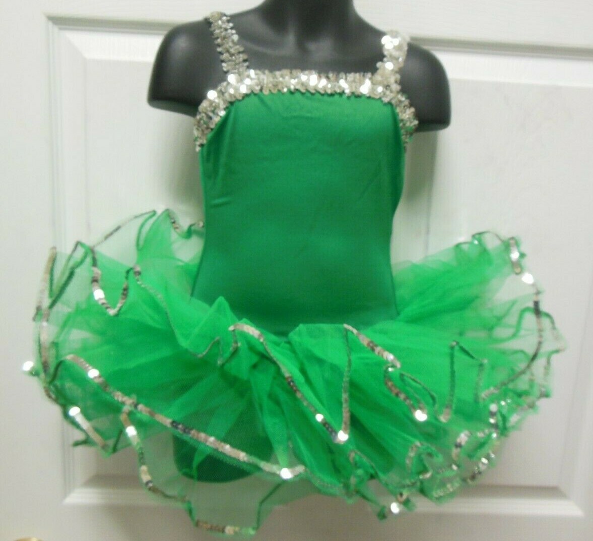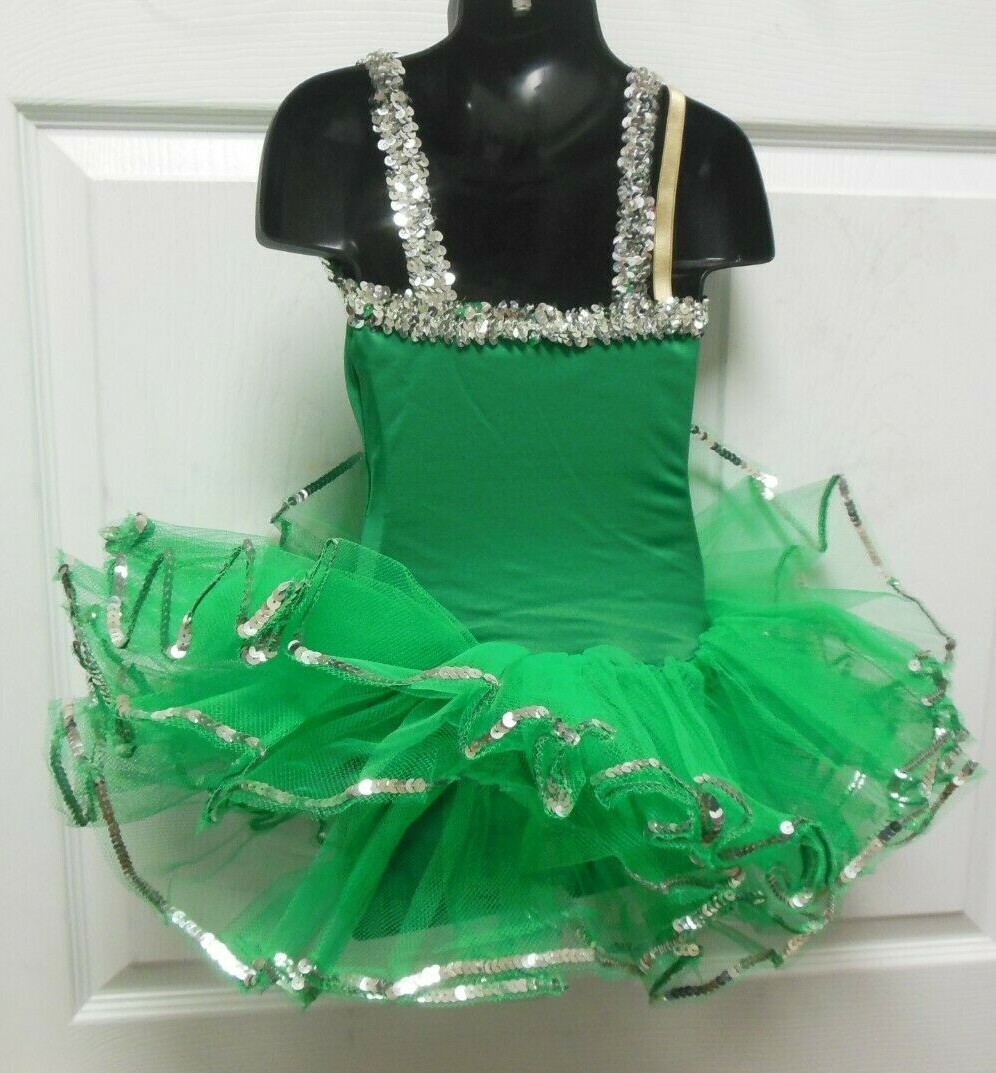 Ballet Costume Kelly Green w/ Silver Sequin attached tutu adjustable strap NWT