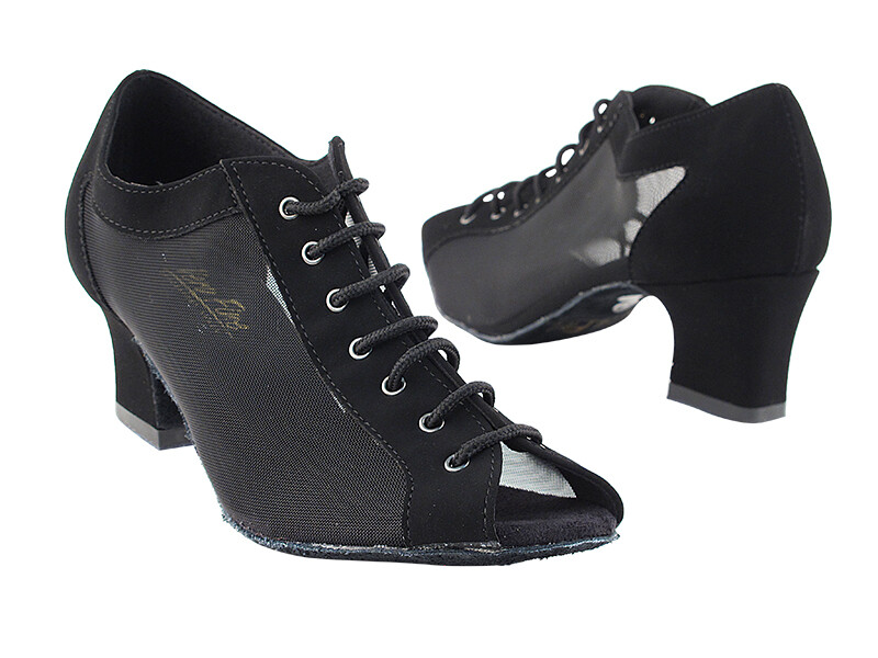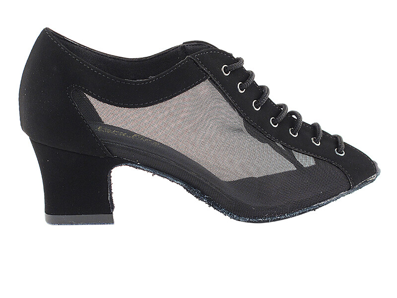 Women's West Coast Swing Salsa Dance Shoes Size 4.5 Heel 2 inch Black Mesh 1643