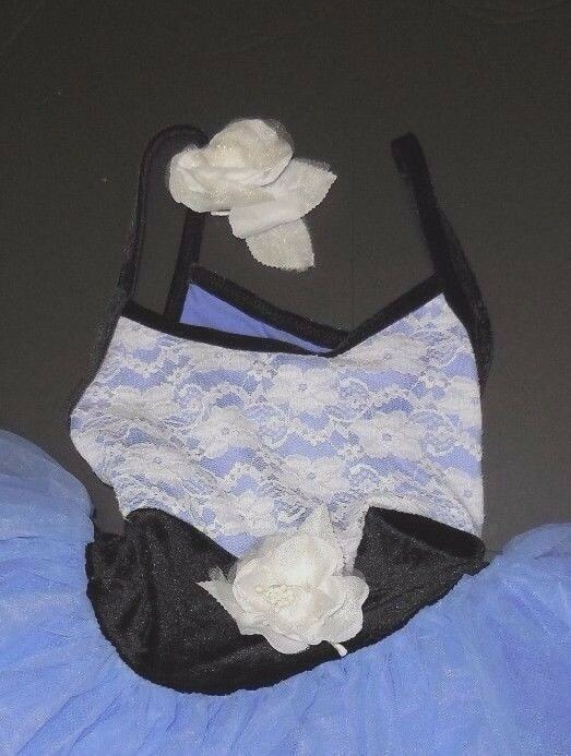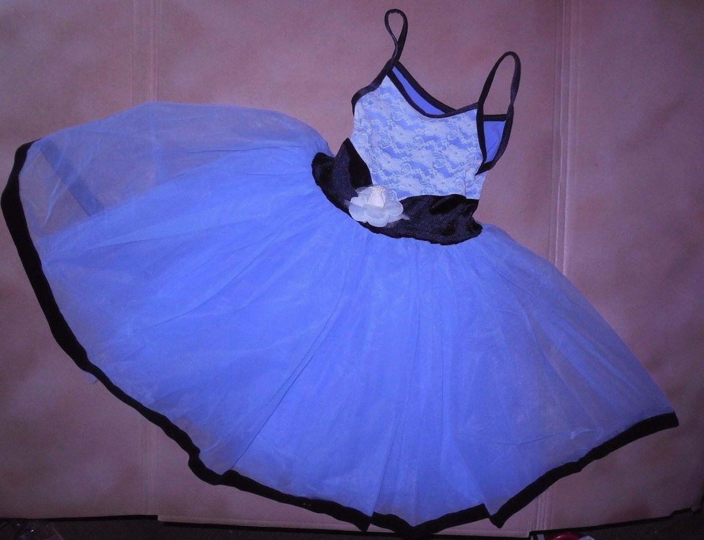 как выглядит BALLET Costume Periwinkle Blue Black Velvet Lace Bodice child sz WolffFording фото