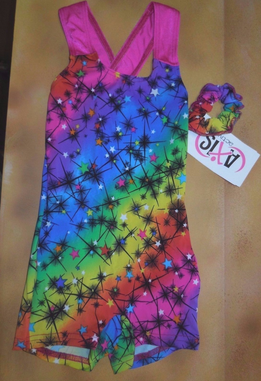 как выглядит Multi Color Shorty unitard w/ scrunchie stars Acro Gymnastics over 70 available фото
