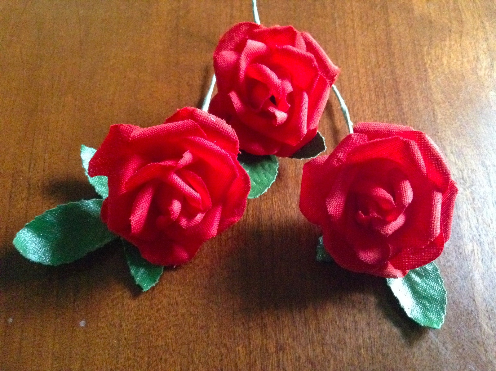 Vtg Millinery Flower Rose 3p Lot 1 5/8 Cotton Pick Red or White for Hat UB