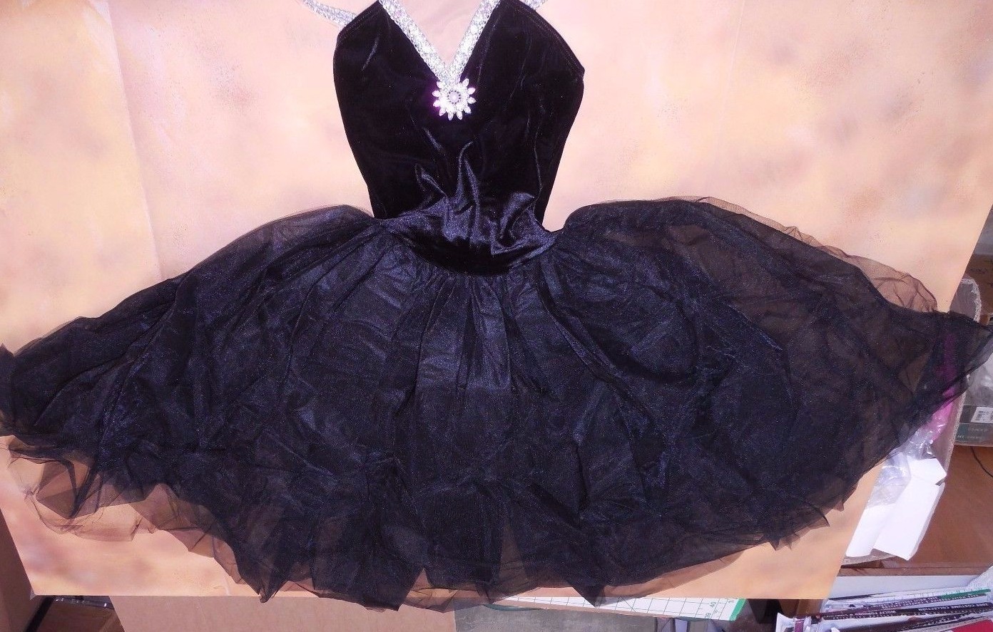 NWT Black velvet Ballet Costume Silver Hologram trim Ladies Petite romantic tutu