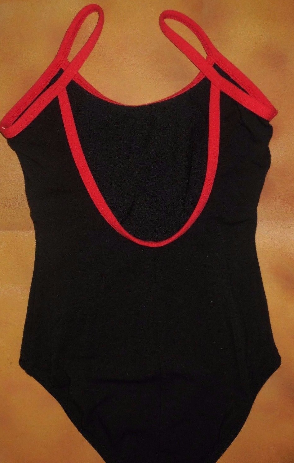 как выглядит Cotton Spandex Camisole Leotard Black with Red Trim Girls Small Child фото