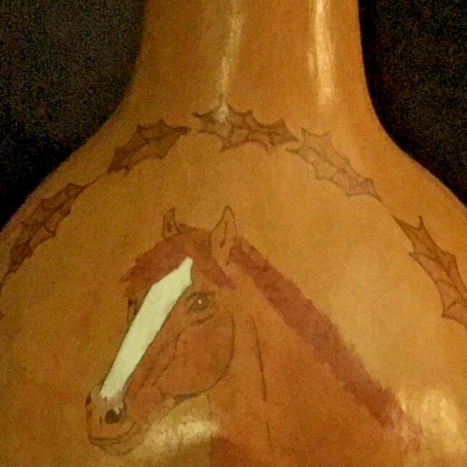 LARGE HAND PAINTED RARE GOURD W/HORSE HEAD SIGNED APPROX. 12 TALL X 8W