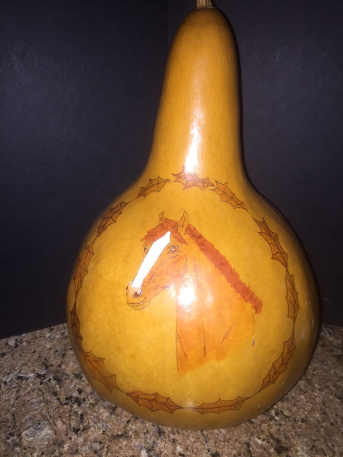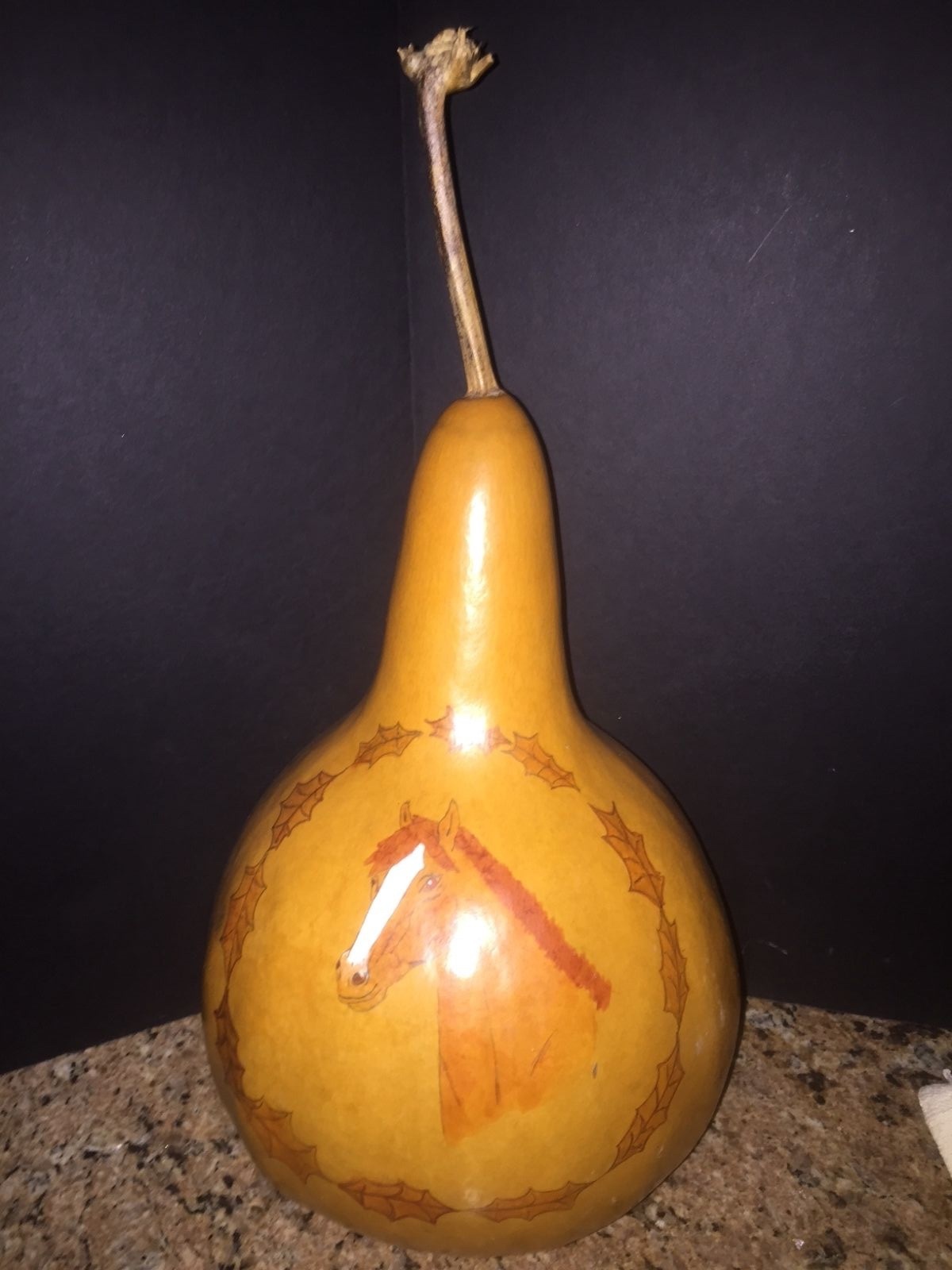 как выглядит LARGE HAND PAINTED RARE GOURD W/HORSE HEAD SIGNED APPROX. 12" TALL X 8"W фото