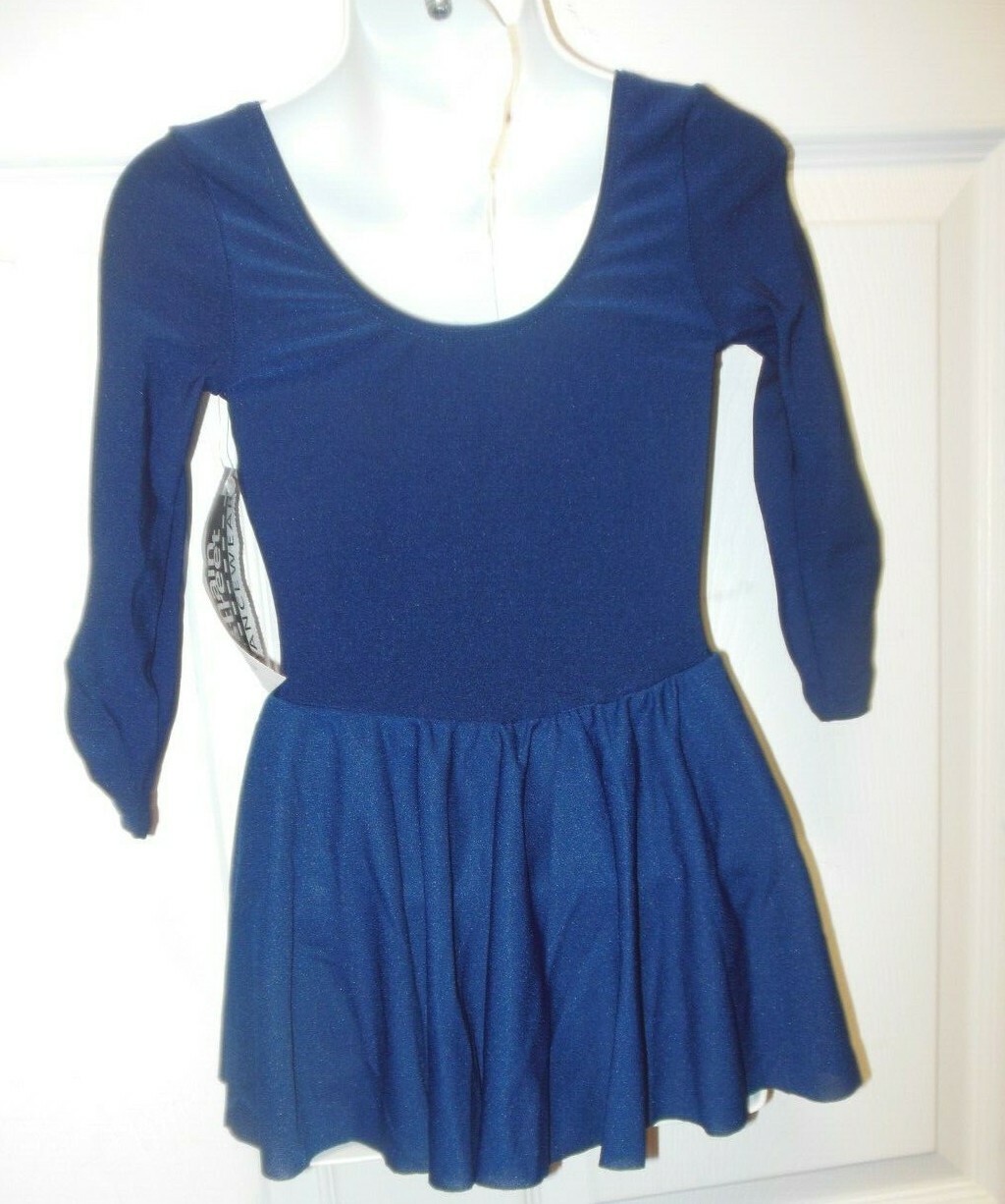 NWT 3/4 sleeve skirted leotard small ch navy rosebud trim dance class dress