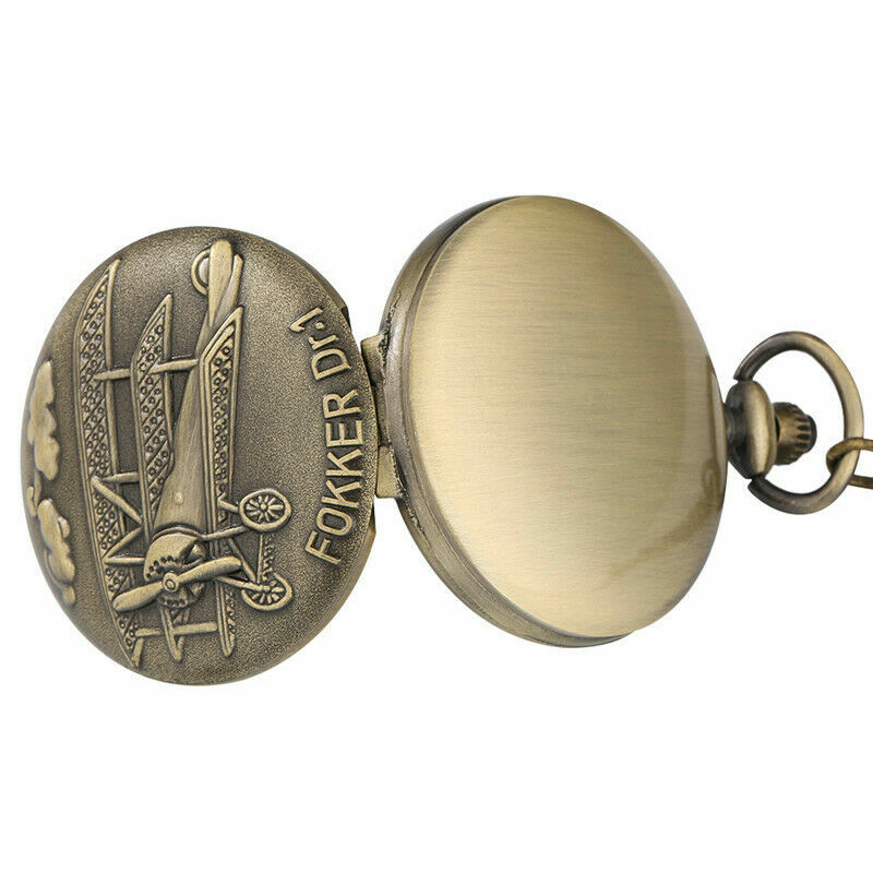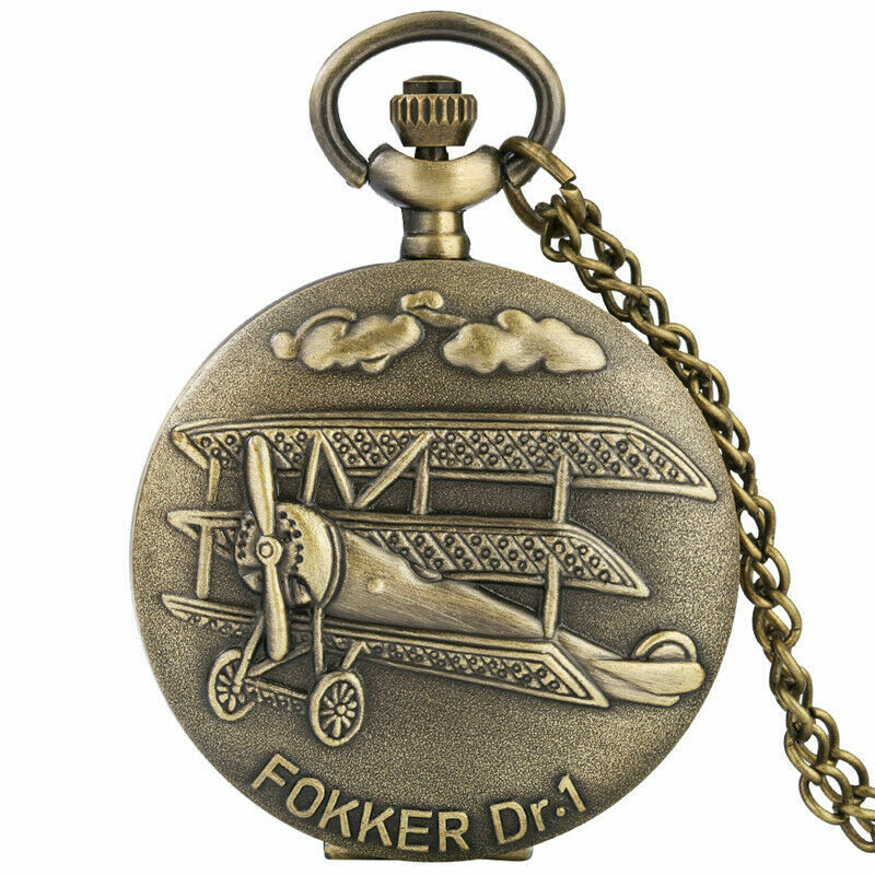 Retro Design Germany Fokker Dr.I Flying Plane Quartz Pocket Watch Chain Gift