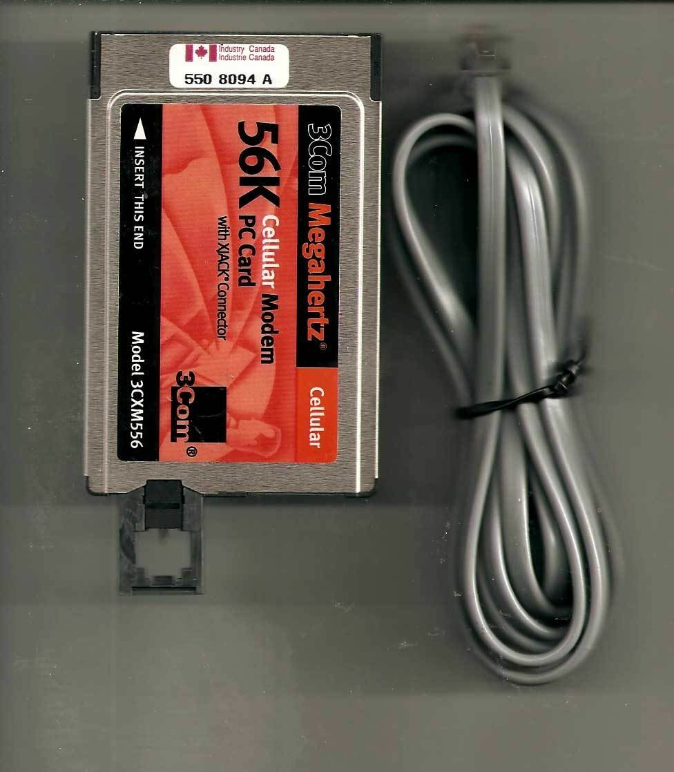 3Com Megahertz PCMCIA 56k Cellular Modem PC Card XJACK 3CMX556