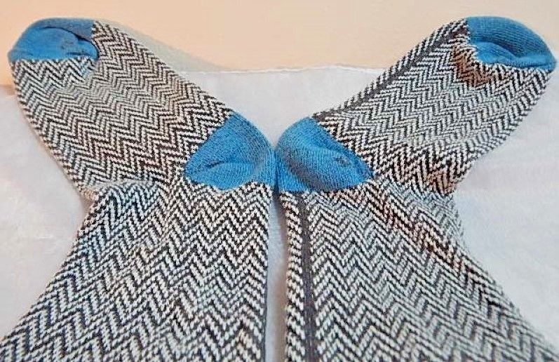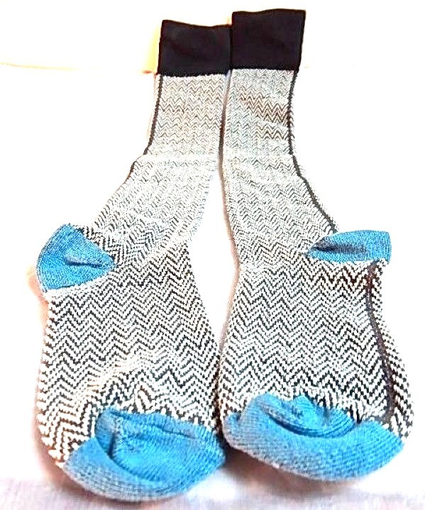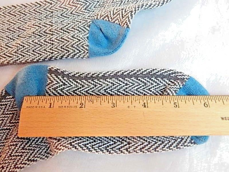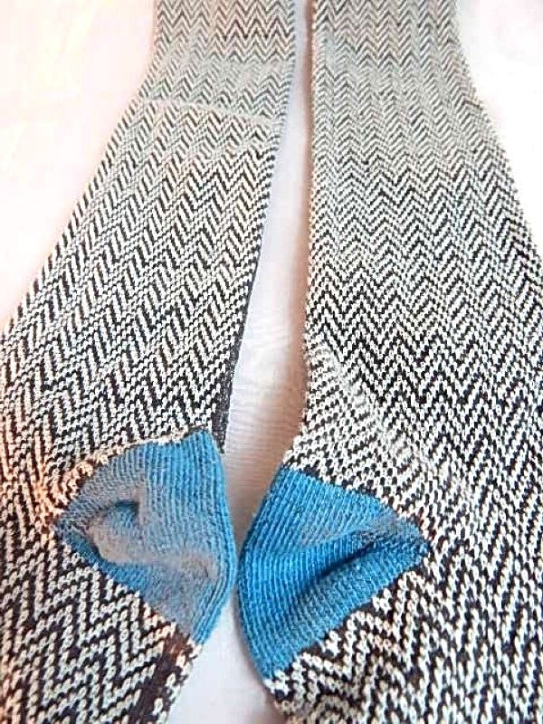 как выглядит VTG 1970s Blue Herringbone Chevron Stripe Knit Socks Retro Back Seam Boho Hippy фото